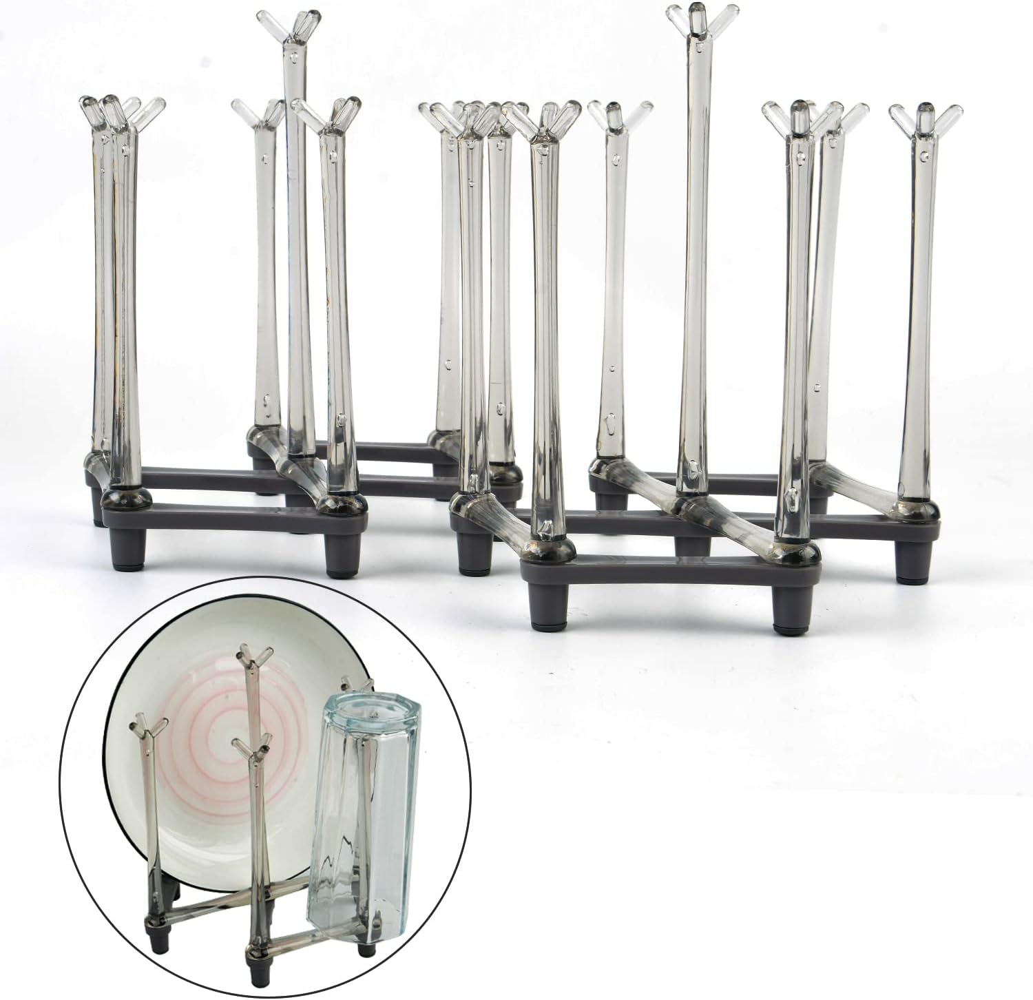 2 Pcs Cup Drying Racks Set, Retractable Drinking Glass & Baby Bottle Drainer Stand, PP Material Mug Draining Organizer, Kitchen Countertop Dishes Holder, Gray
