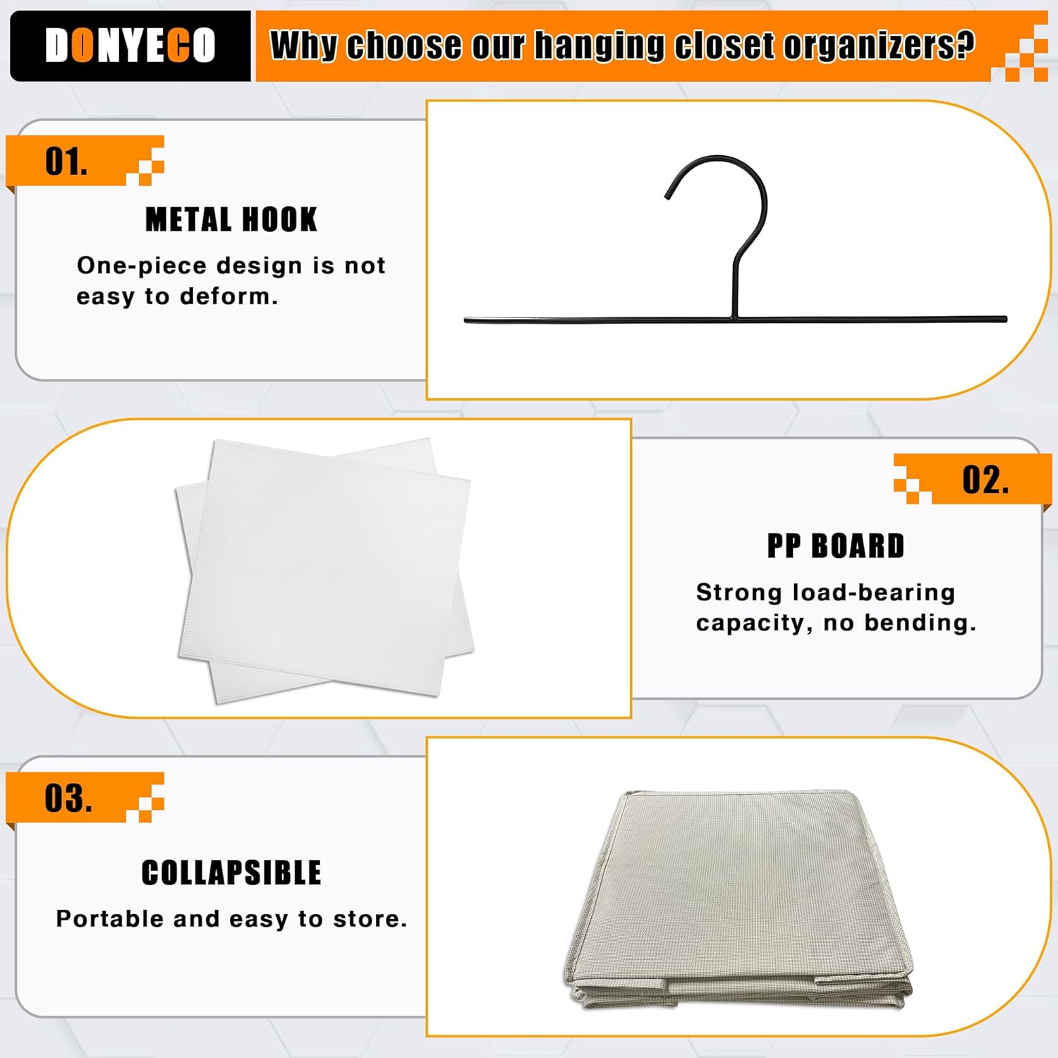• 【Sturdy and durable】2 sturdy rods and 2 durable metal hooks, with 6 PP panels in the compartment for firm support.