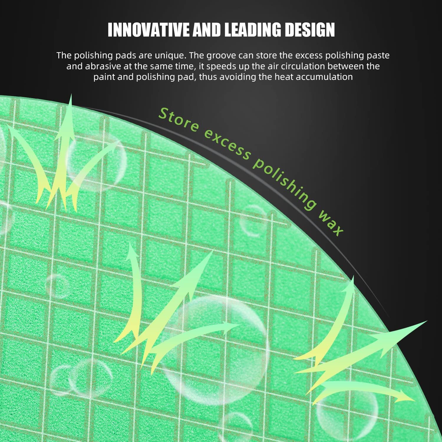 • Compounding & Polishing & Waxing in 1 set◆ Bring your car back to shiny! Great for removing sun abuse, car scratches, headlight wearing and etc. Green and Yellow compounding pad suitable for removing oxidation coating and moderate to light scratches. Orange and Blue polishing pad for removing sun abuse and swirl mask. Red pad for finishing and waxing