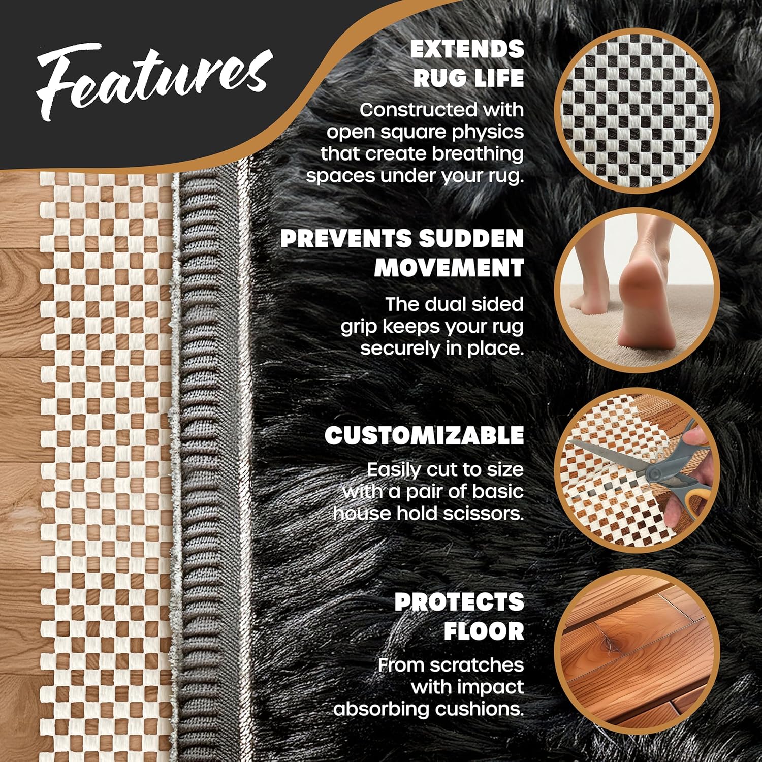 • Enhanced Floor Covering Defense: Optimize ventilation & stop moisture accumulation with our open-weave rug mat non slip protection. This carpet padding allows fibers to breathe, boosting the longevity of your carpet or rug. Address problems like uneven floors & curled edges with our effective non skid rug backing . The perfect rug gripper for hardwood floors , tile floors, slate floors, stone floors & more, the Nevlers Rug Stopper Non Slip Pads reduce tripping hazards to make your home safer.