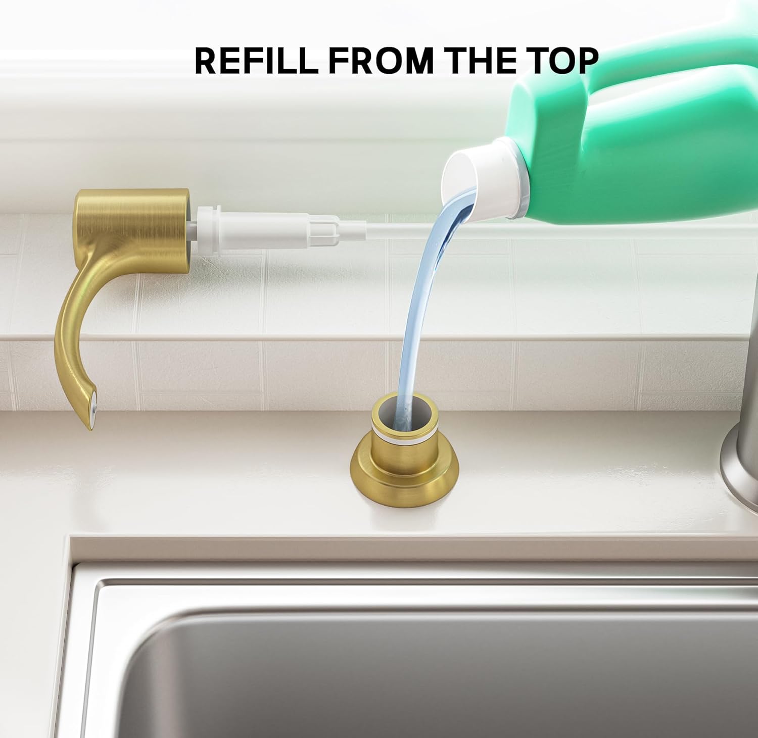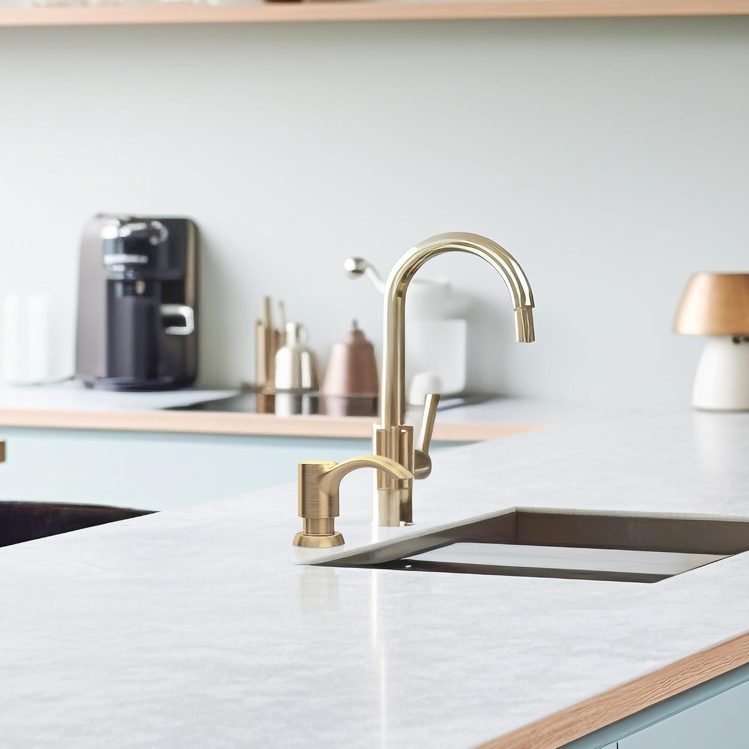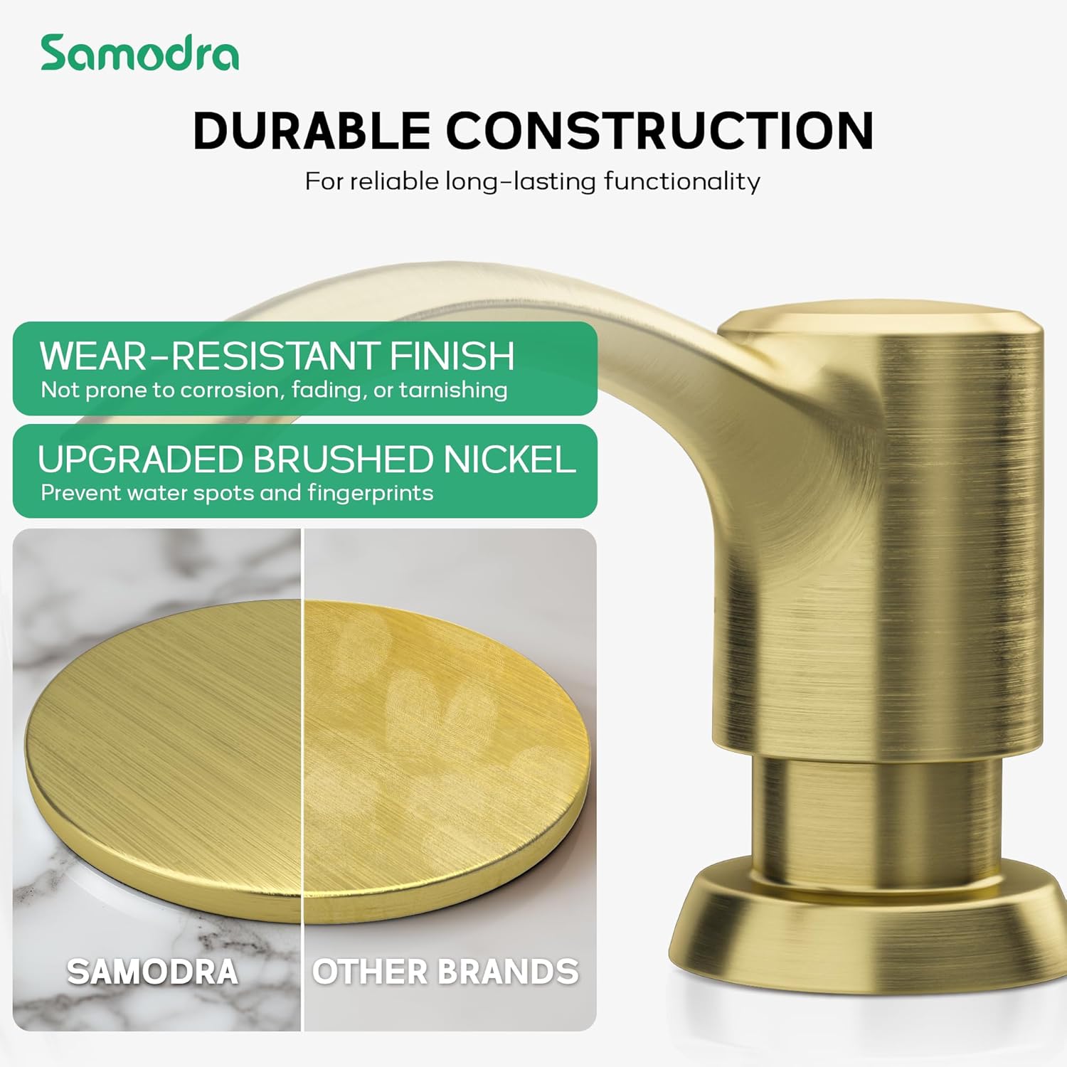 • 【Seamless Coordination】- The dispenser complements most gold kitchen faucets, enhancing the overall aesthetic of your sink area. It contributes to a neater, cleaner, and more efficient kitchen environment.