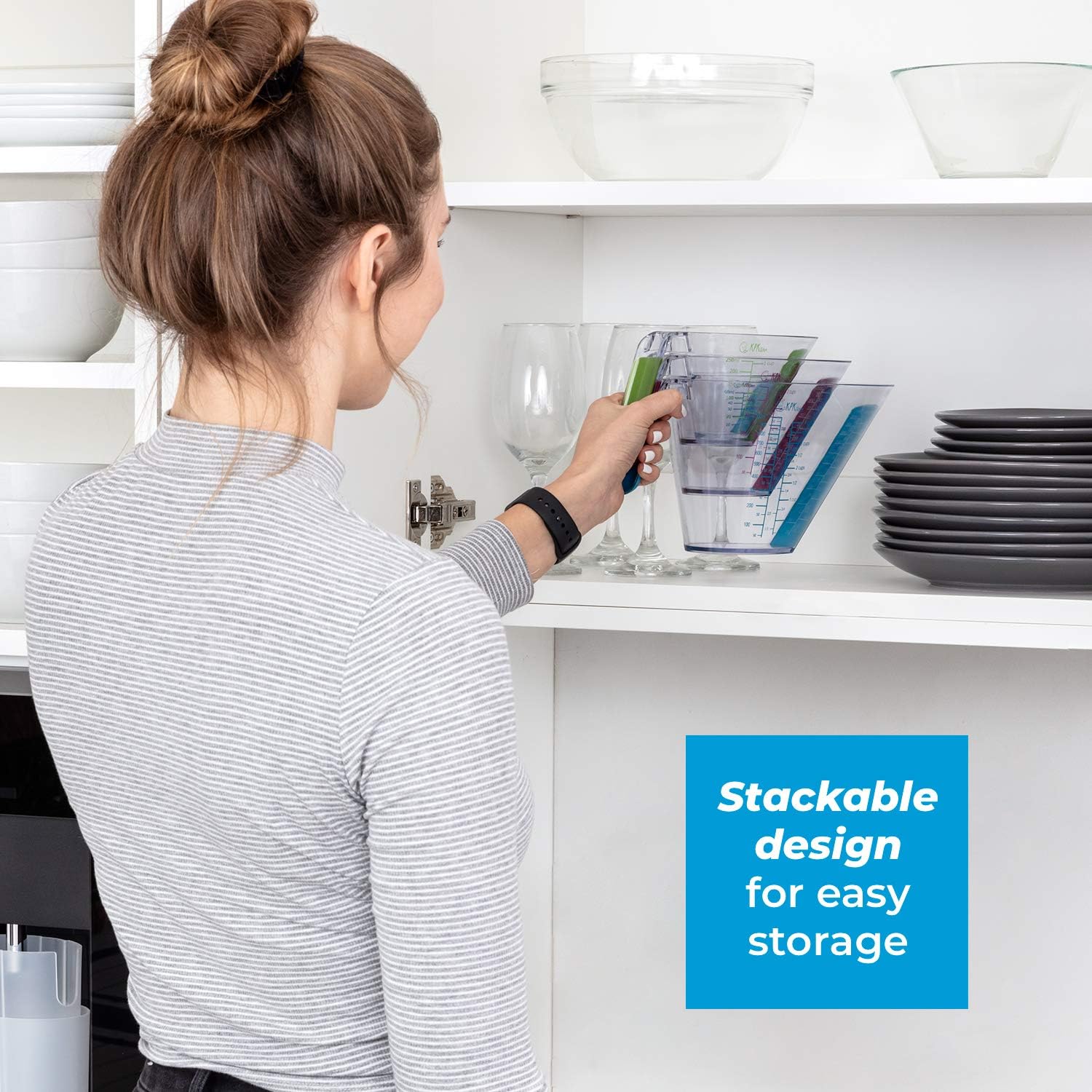 • 💪 STACKABLE DESIGN FOR EASY STORAGE – Our 4 piece measuring cups plastic set features a unique stackable & nesting design which makes it super easy to store. When you‘re done, just nest all measure cups together for compact storing. Our measuring set cups also feature a non-slip handle for a comfortable grip so you will pour with precision, even with wet hands. Makes a great holiday gift for every baking lover!