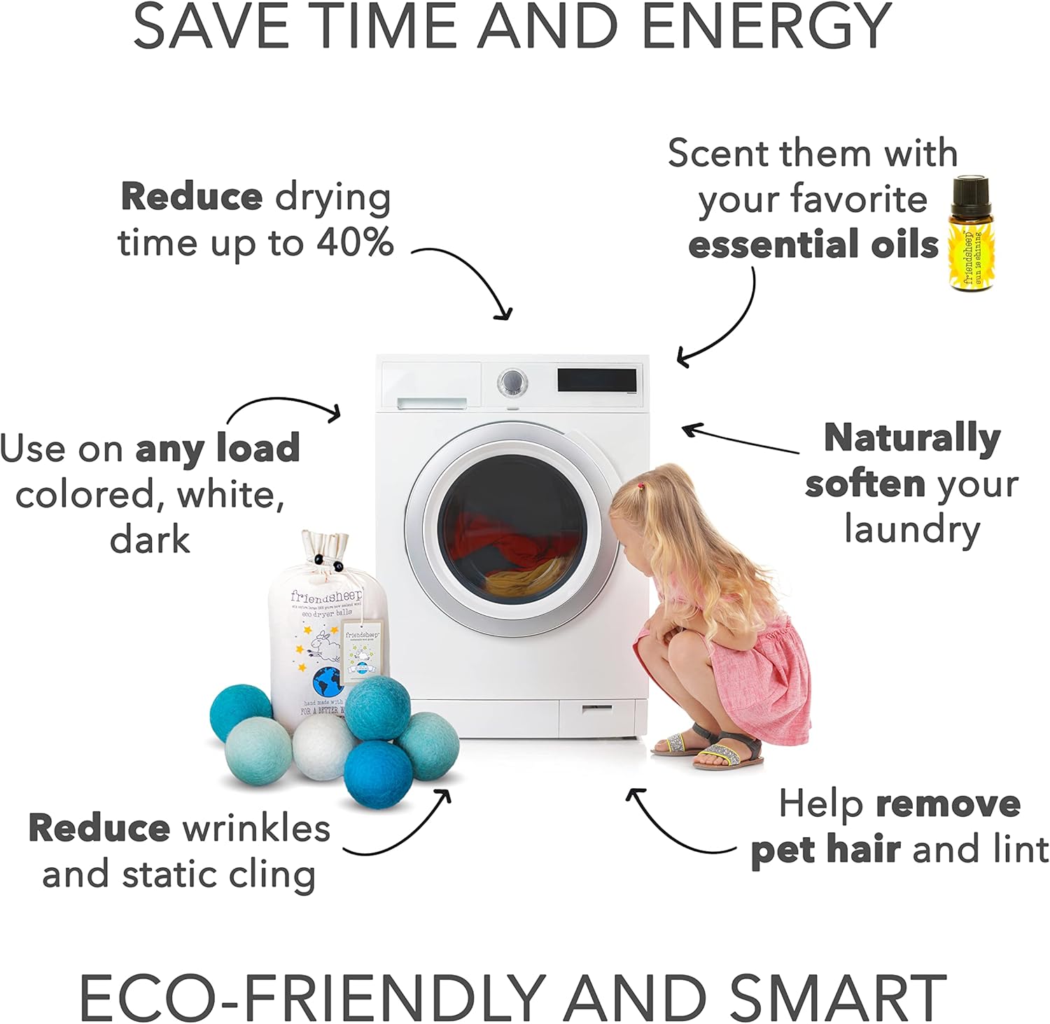 Friendsheep Wool Dryer Balls, Organic Reusable Fabric Softener Alternative for Laundry, Handmade, Fair Trade, Hypoallergenic, Eco-Friendly, Plastic-Free (6 Pack XL - Blue Ocean)