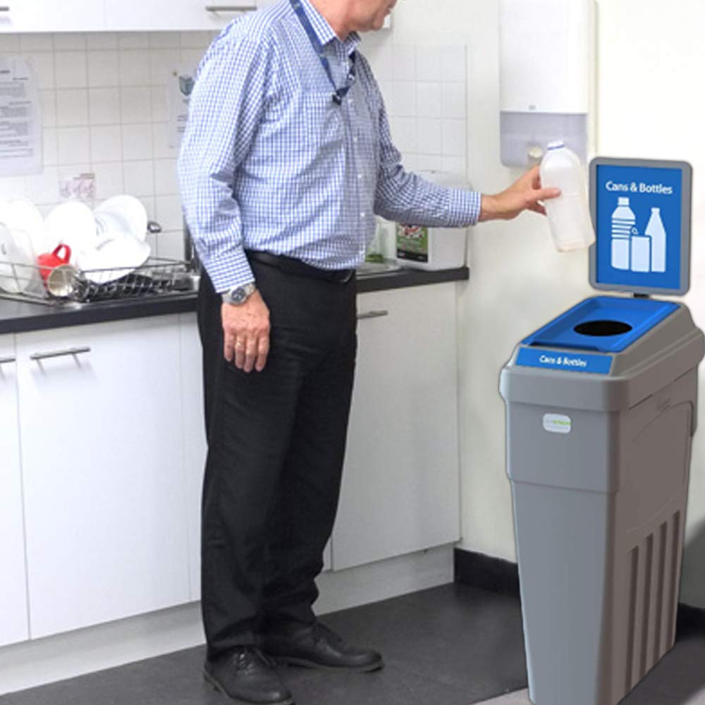 • SMART RECYCLE: Small footprint, high-visibility recycling station that collects compost and keeps your streams clean.Colour-coded top plates and intuitive stream openings make it easy for users to sort their waste quickly and easily