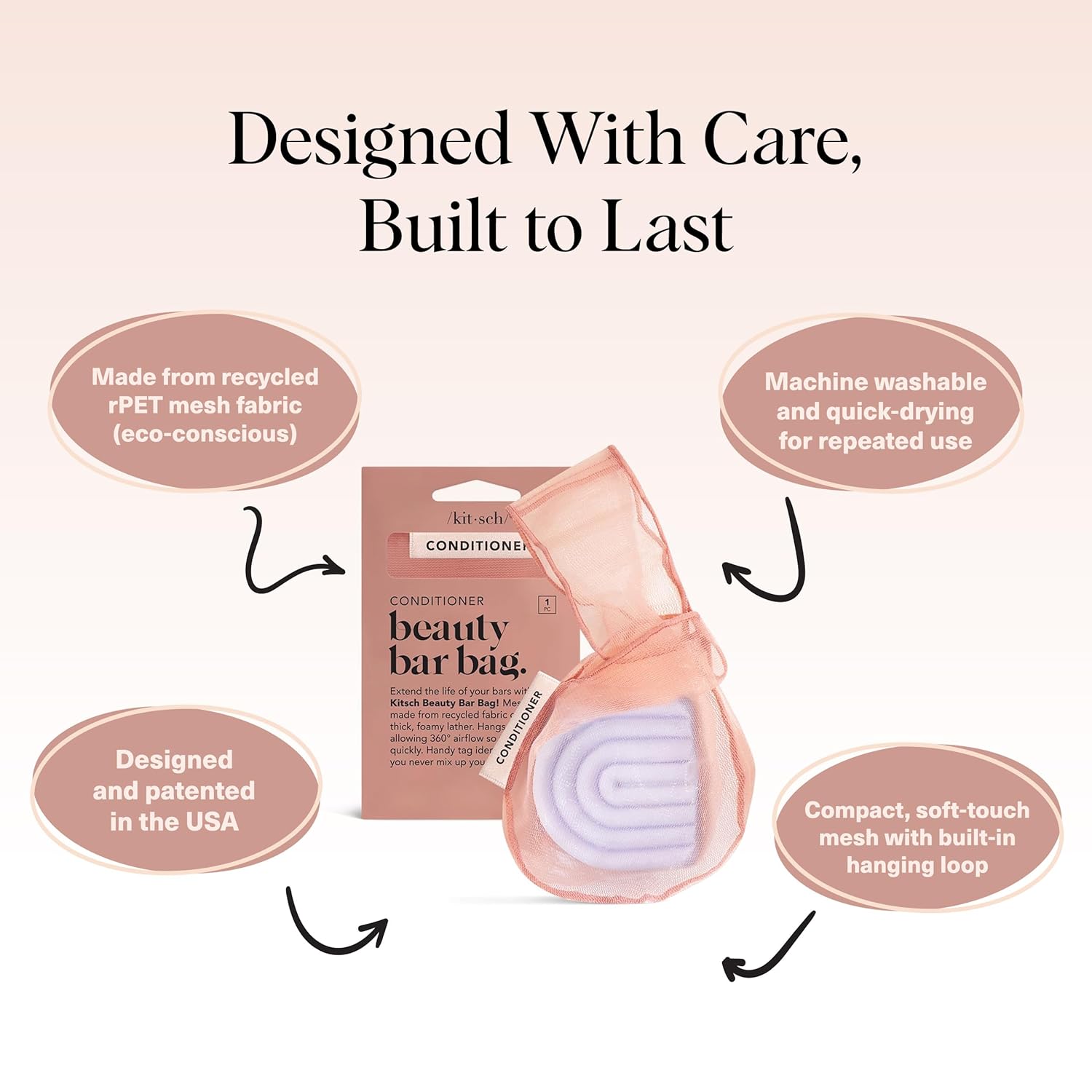 • FUNCTIONAL & EASY TO USE SOAP POUCH – The Kitsch soap bag is expertly designed with labeled pouches for body wash, shampoo, and conditioner bars, so you’ll never mix them up. This versatile soap pouch hangs neatly in your shower for effortless organization.