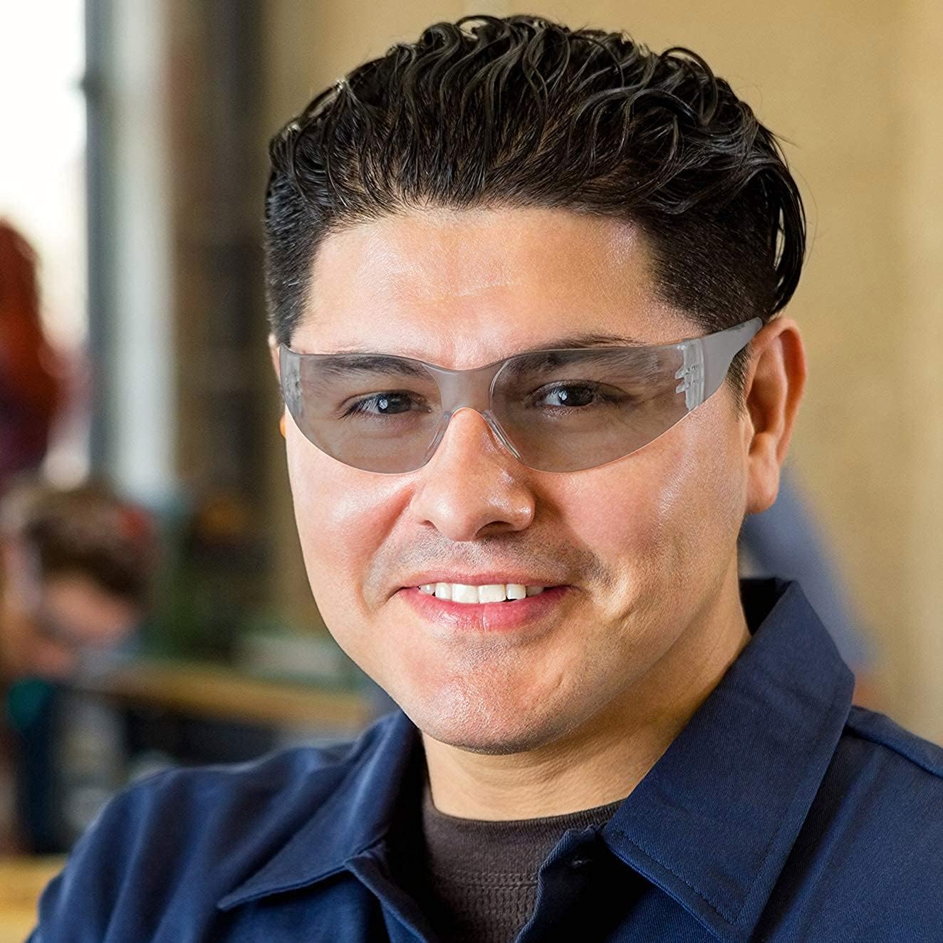 • Built for Comfort & Safety – Incredibly light weight safety glasses with a wrap-around lens style that provides built-in side shield safeguards and ballistic impact protection while ensuring a snug, comfortable and secure fit that helps minimize slippage. Easily wear for long durations of time to protect eyes against wet or dry flying debris and airborne contaminants. Deep, universal-fit temples provide full brow and side protection equal to that of eye wear with large side shields.