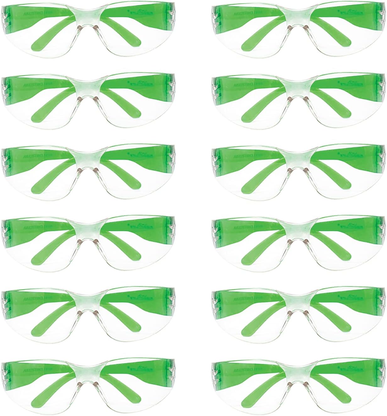 • Color & One Size Fits Most – Fits adults, teens, and older children. 12 piece pack of Green safety glasses. Usage can include, but is not limited to: Medical, Industrial, Dental, Construction, Janitorial, School, Daycare, College, etc.