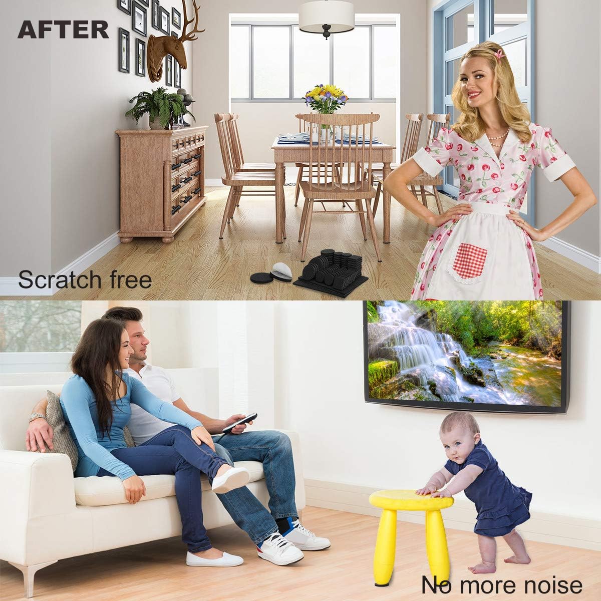 • ❤STOP SCRATCHING YOUR FLOORS❤ Place our felt furniture pads on the legs of your furniture to avoid scratching or scuffing your beautiful wooden, laminate or tiled floors. And you never have to hear that annoying scraping noise again. Protect the value and beauty of all floors with durable yet soft furniture pads on the feet of all furniture, including beds, desks, tables, chairs, sofas, electrical appliances, and cabinets.