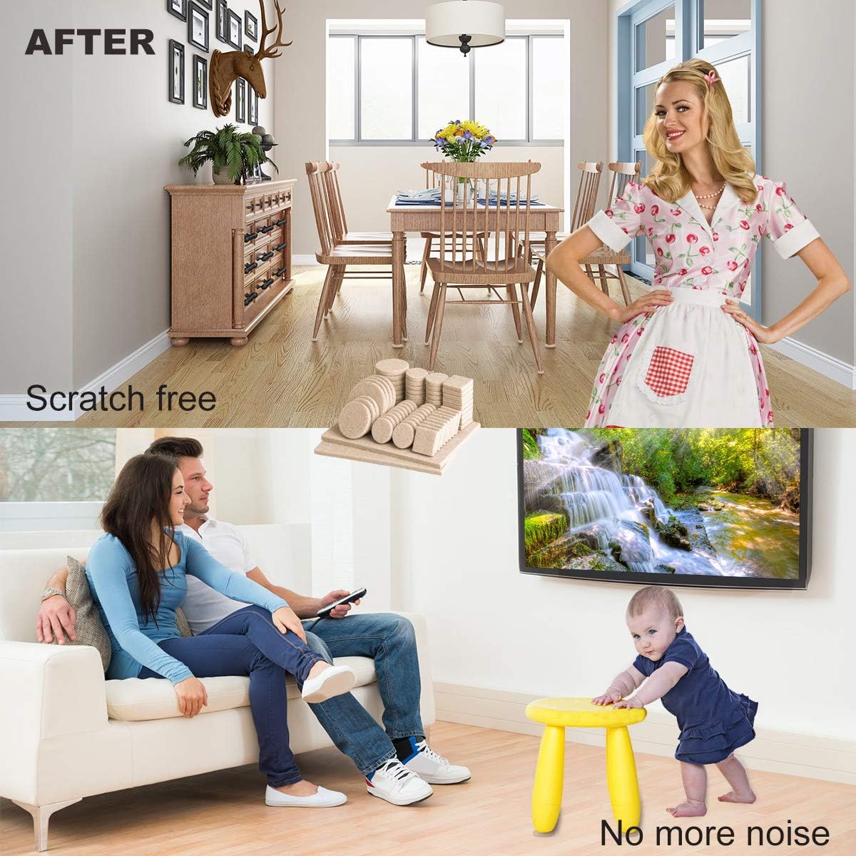 • ❤STOP SCRATCHING YOUR FLOORS❤ Place our felt furniture pads on the legs of your furniture to avoid scratching or scuffing your beautiful wooden, laminate or tiled floors. And you never have to hear that annoying scraping noise again. Protect the value and beauty of all floors with durable yet soft furniture pads on the feet of all furniture, including beds, desks, tables, chairs, sofas, electrical appliances, and cabinets.