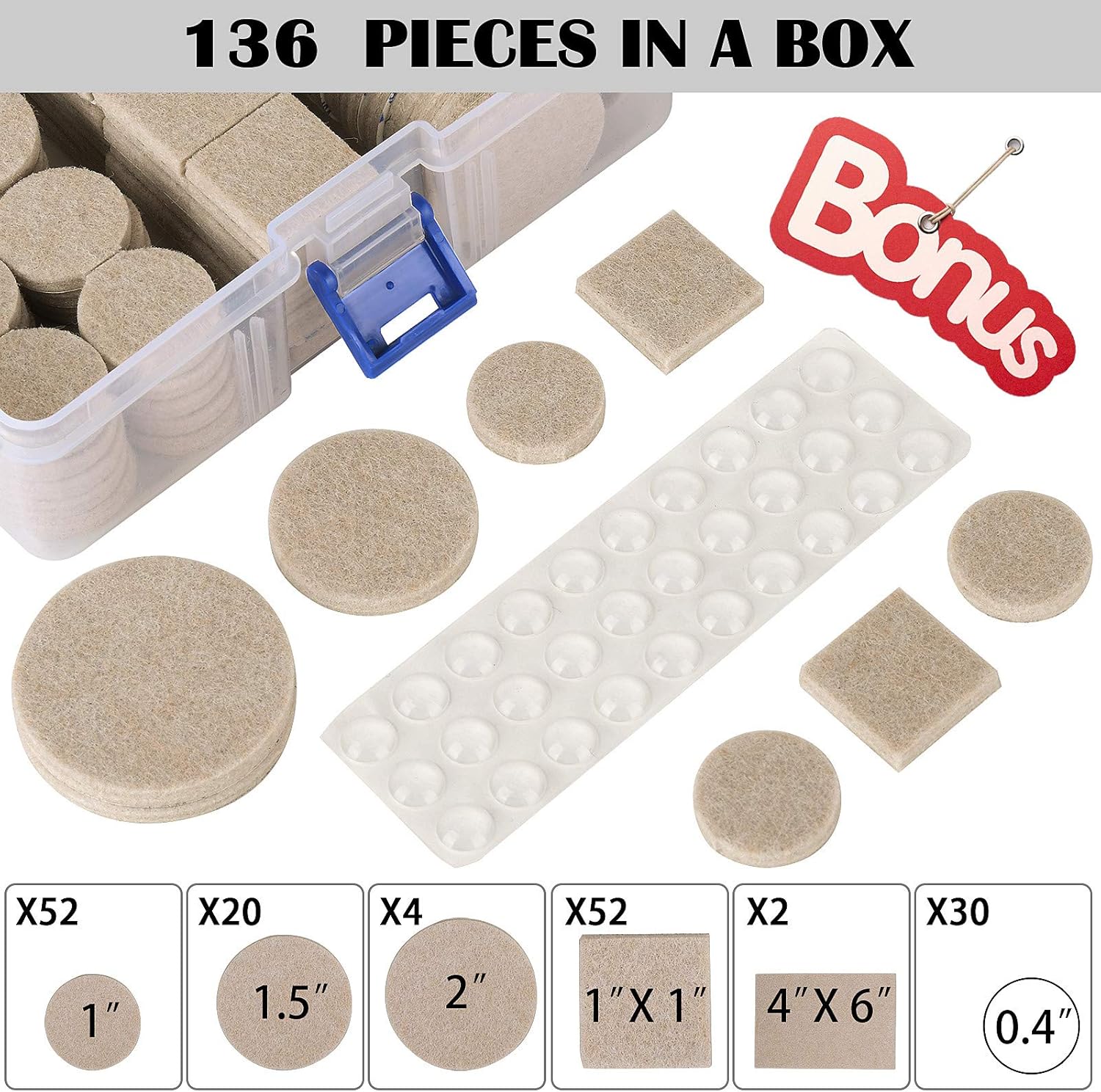 Felt Furniture Pads-136 Pieces Felt Pads for Furniture Beige 5mm Thick, Floor Savers for Furniture Anti Scratch, Best Floor Protectors with Case for Hardwood Floors