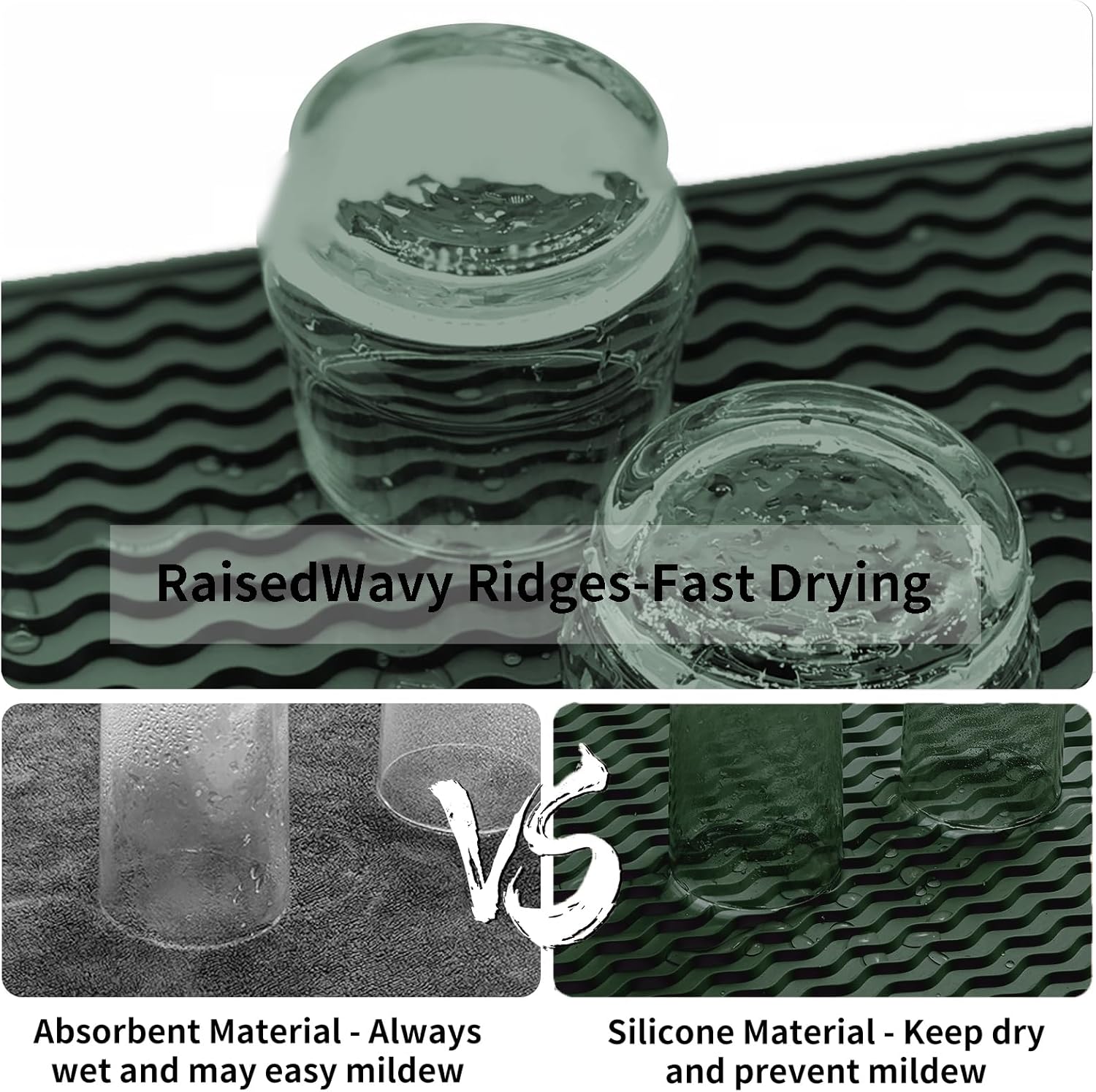 ZLR Silicone Dish Drying Mat for Kitchen Counter, Eco-Friendly Fast Dry Dish Mat, Easy Clean Multi Usage Drying Matt, Heat Resistant Trivet, 12" x 16" Large, Dark Green