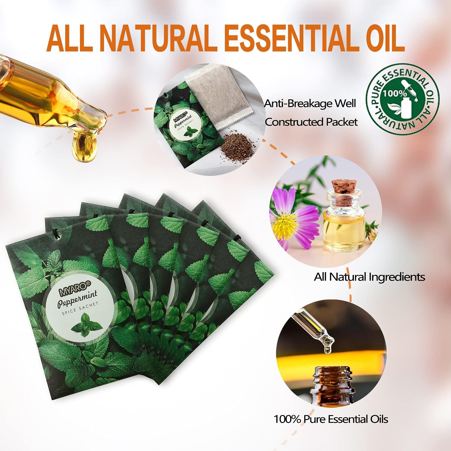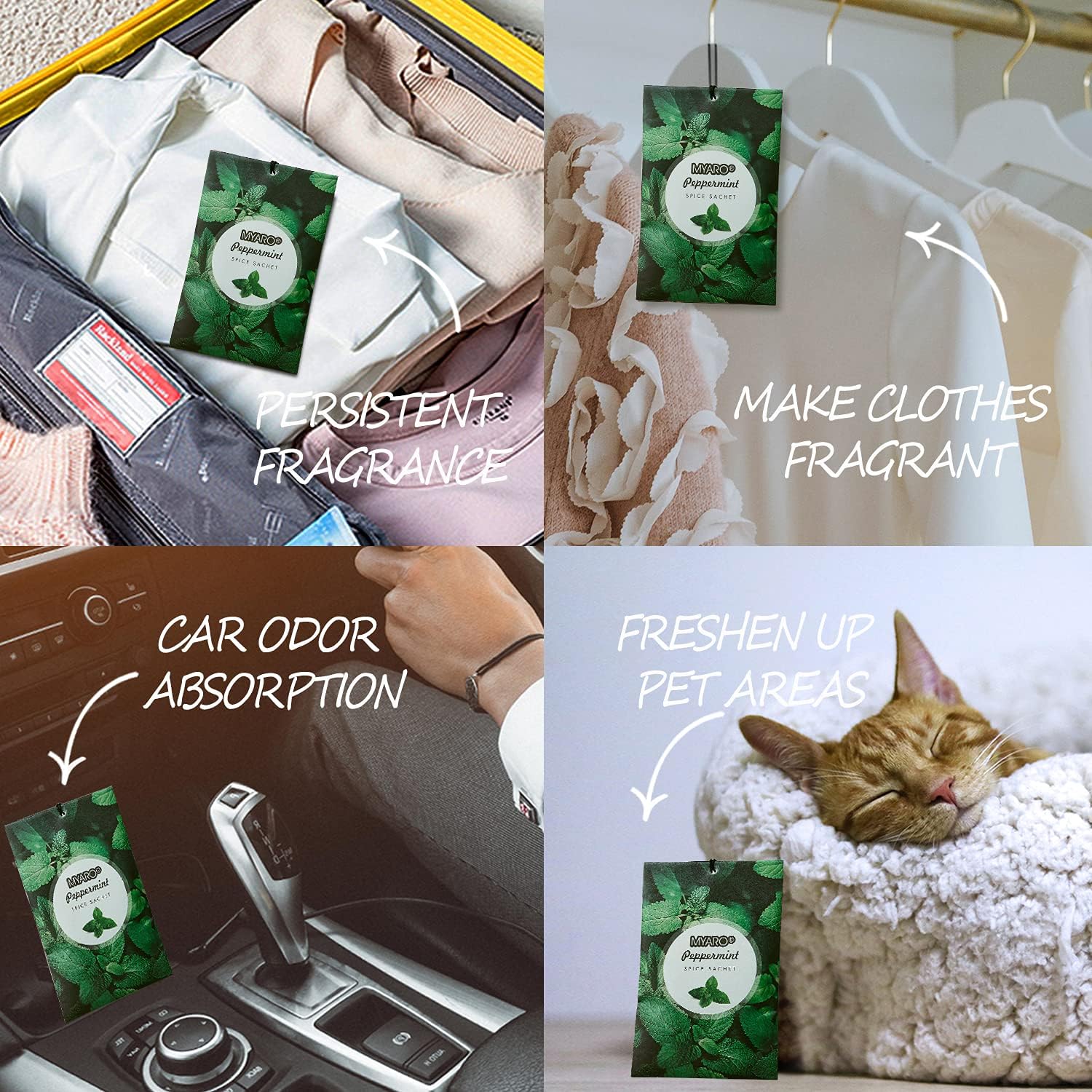 • MYARO Peppermint sachet bags: Includes 12 scented sachets (each bag size: 4.13 inch x 2.76 inch). Our natural fragrance will take you on a journey with the Peppermint fresh scents sachet packets