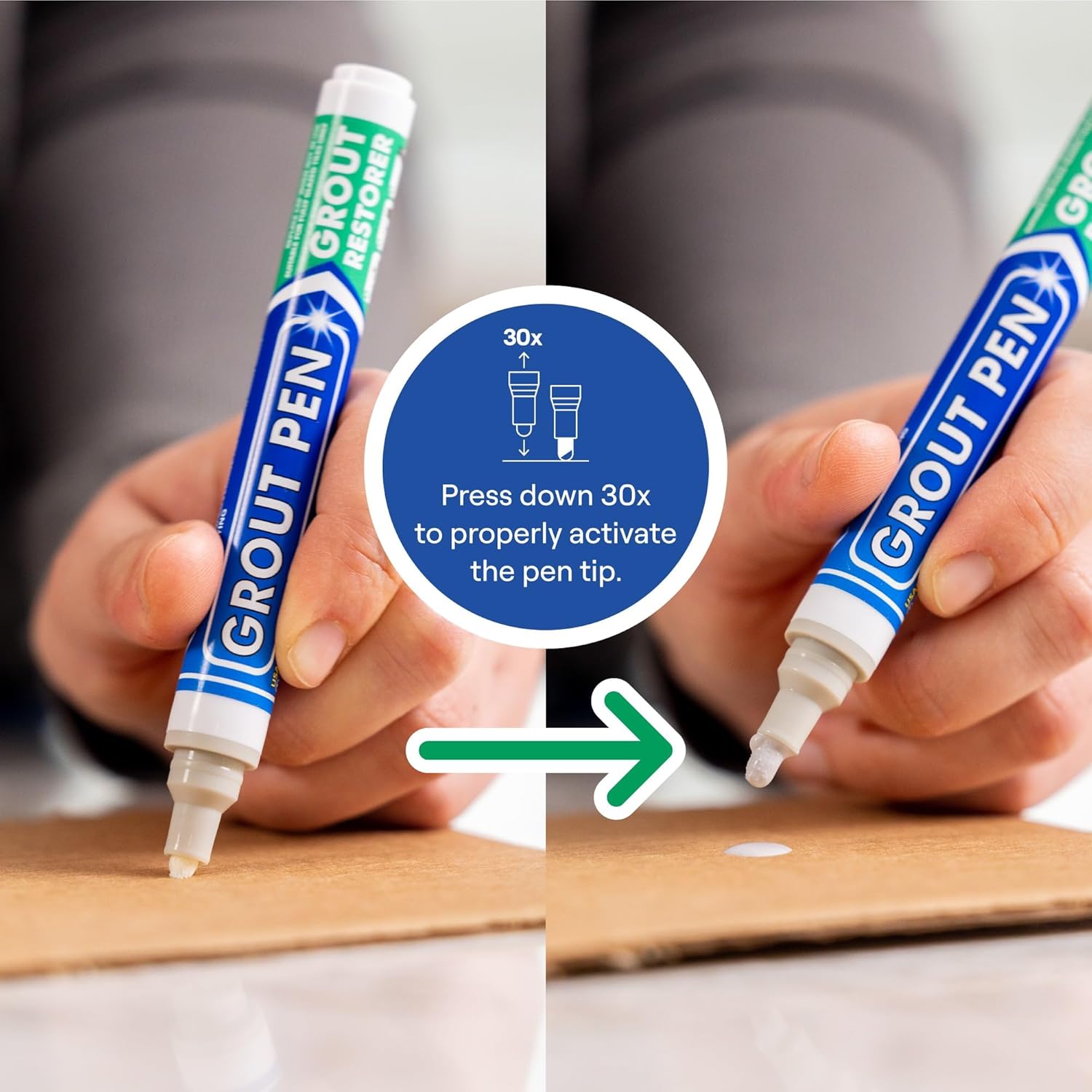 • DRY TIP: Pen needs to be primed before use, all new GROUT PENs come with a dry white tip. To activate rapidly pump the tip (30+ times) until fully saturated
