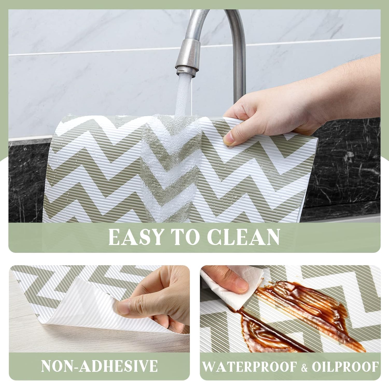 • Waterproof and Easy to Clean- These storage shelf liners are waterproof and dust-proof which keeps belongings in your kitchen cabinet, fridge and drawer organized and protected from grease and spills. The non-adhesive shelf liners are easily removable and can be cleaned with mild soap and water.