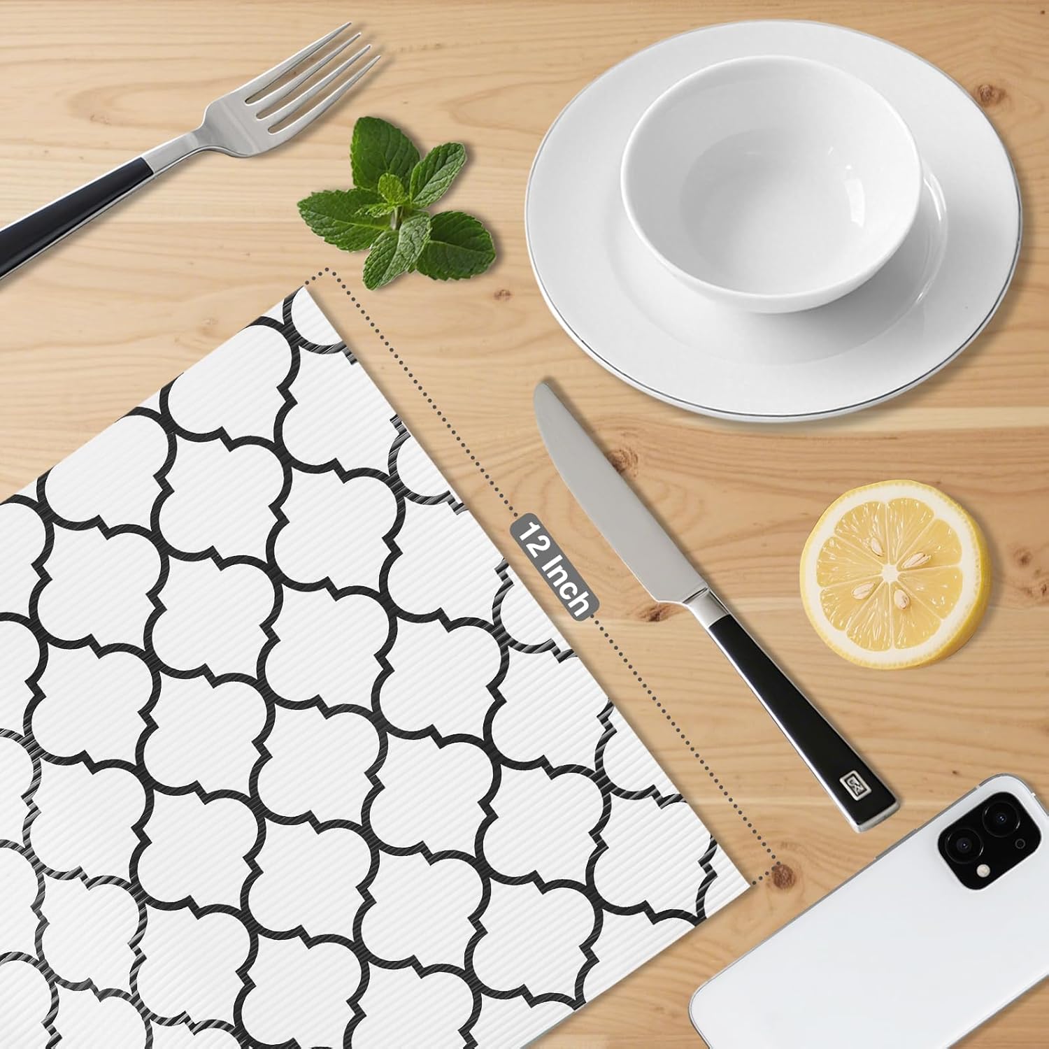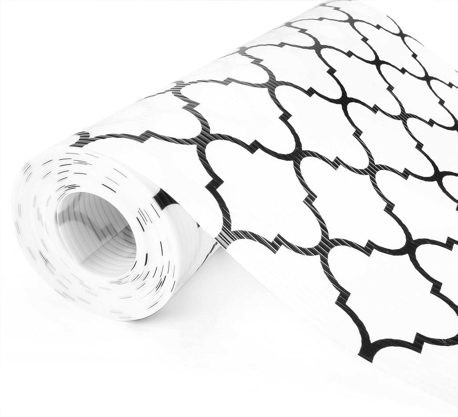 Glotoch Shelf Liner for Kitchen Cabinets,12" x 20Ft Non Adhesive Drawer Liners for Kitchen Cabinets,Waterproof and Durable Refrigerator Liners, Cabinet Liner for Shelves Fridge Black and White