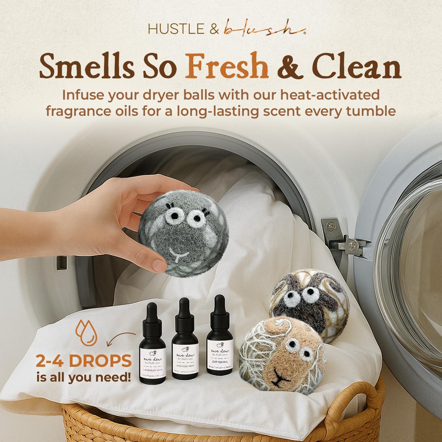 • NATURAL AND SAFE FOR SENSITIVE SKIN: Protect your family with these wool dryer balls made from 100% premium New Zealand wool. Great for baby clothes and delicate fabrics, these fragrance-free dryer balls wool cute option keeps laundry soft without harsh chemicals. Feel confident using them if you have sensitive skin for safer, healthier laundry.