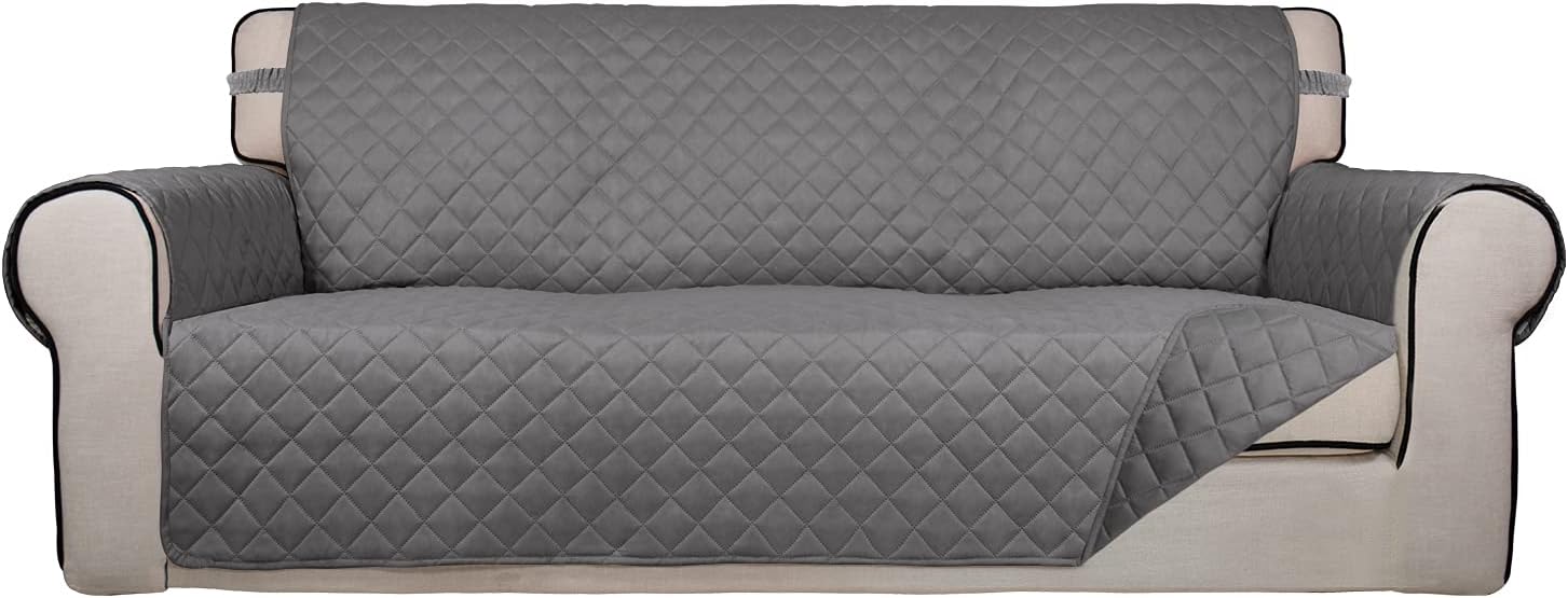 PureFit Reversible Quilted Sofa Cover, Water Resistant Slipcover Furniture Protector, Washable Couch Cover with Non Slip and Elastic Straps for Kids, Pets (Oversized Sofa, Gray/Gray)