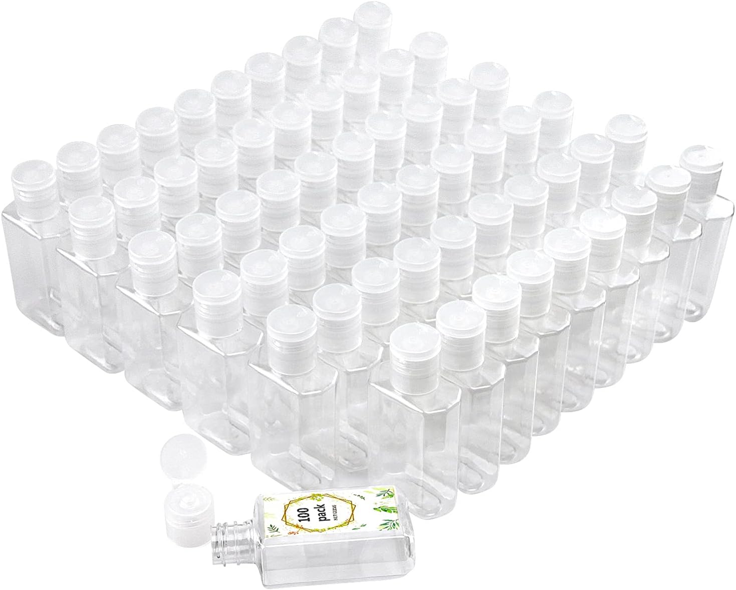 2oz Empty Hand Sanitizer Travel Size Bottles, Refillable Clear Plastic Containers with Flip Cap for Shampoo, Lotion, Cream, Baby Shower, Tolitery (100 Pack)