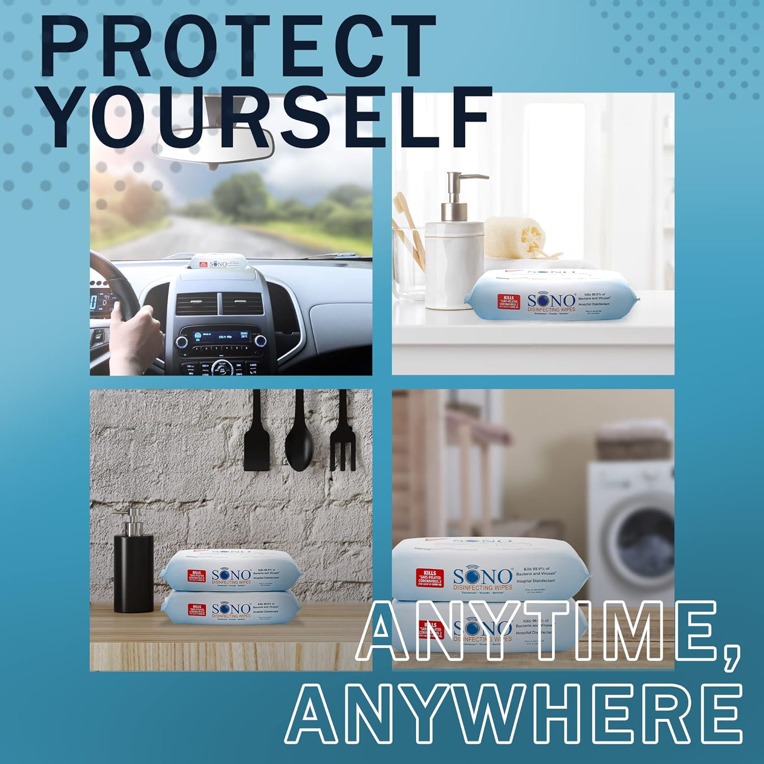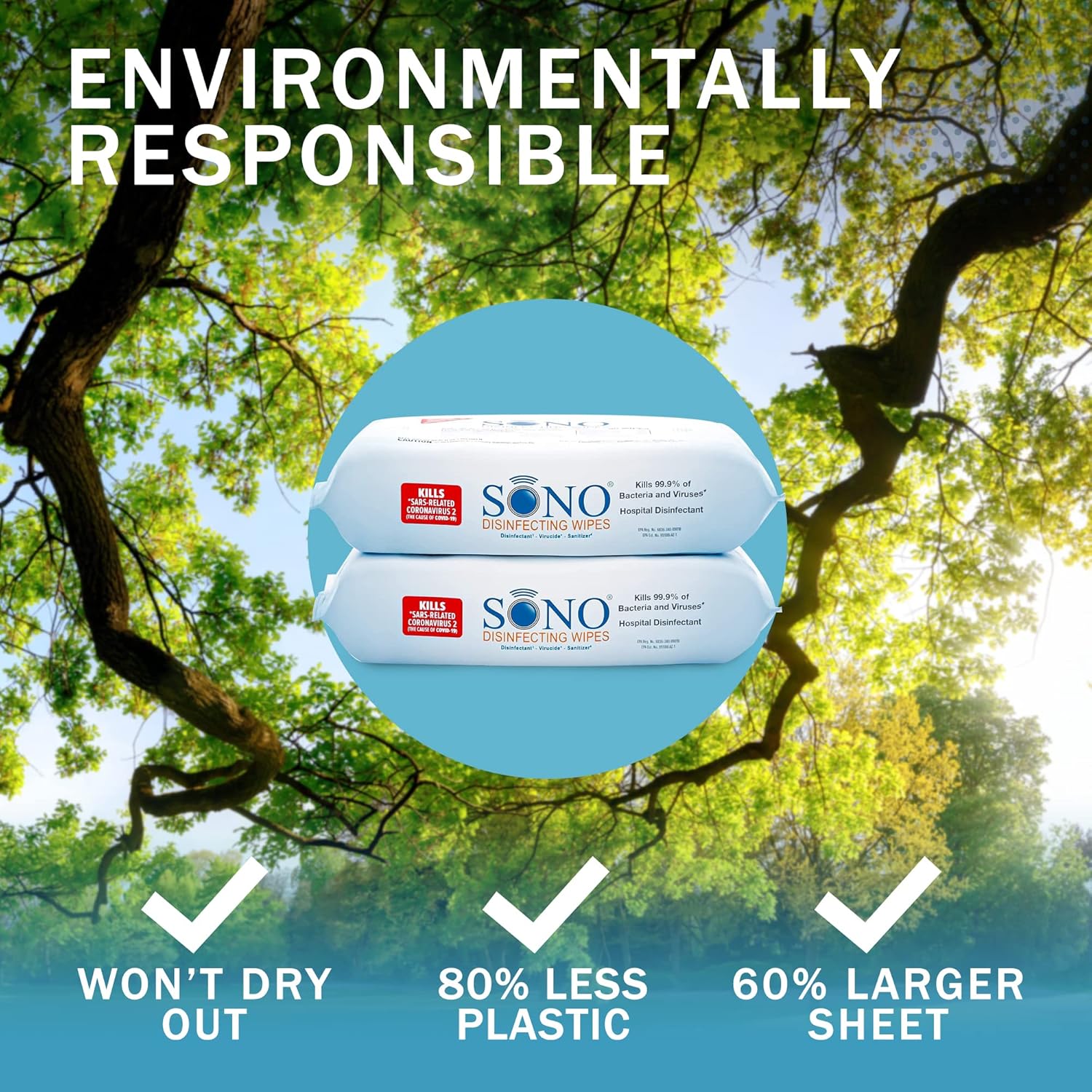 SONO Disinfecting Wipes - 160 Count (Pack of 2) + Sanitizer, Medical-Grade, Alcohol-Free, No Bleach, Gentle & Effective Multi-Surface Cleaning Solution, Larger Sheets