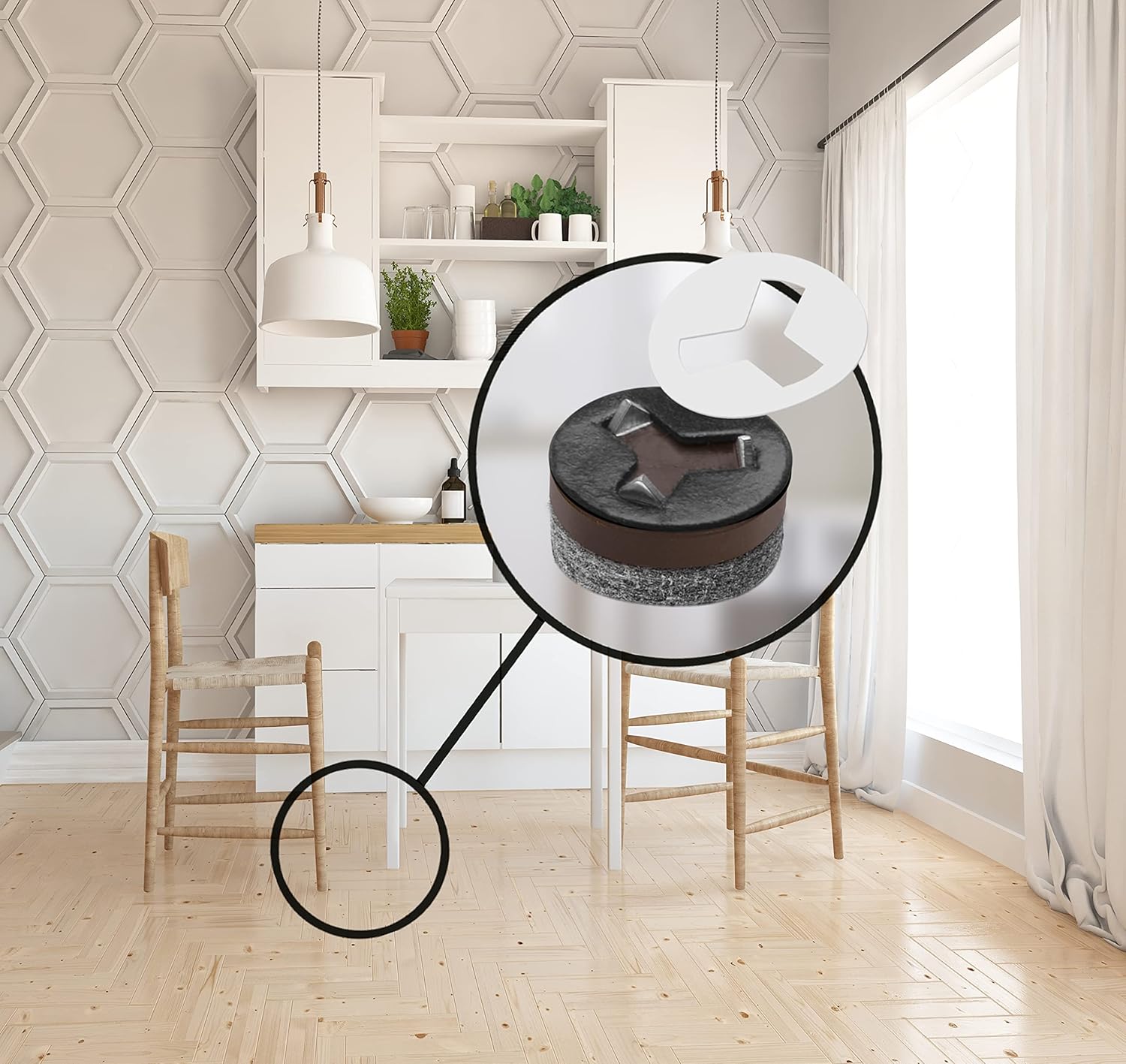 • Felt furniture pads guaranteed to stay on – Each tap in 3/4 inch felt chair slider features 3 steel prongs paired with a strong self-stick adhesive backing that hangs on and won’t come off furniture legs / chair feet (recommended for furniture legs that are between 3/4" to 1-1/4" in diameter at foot). Not for use on furniture legs under 3/4" wide at foot.