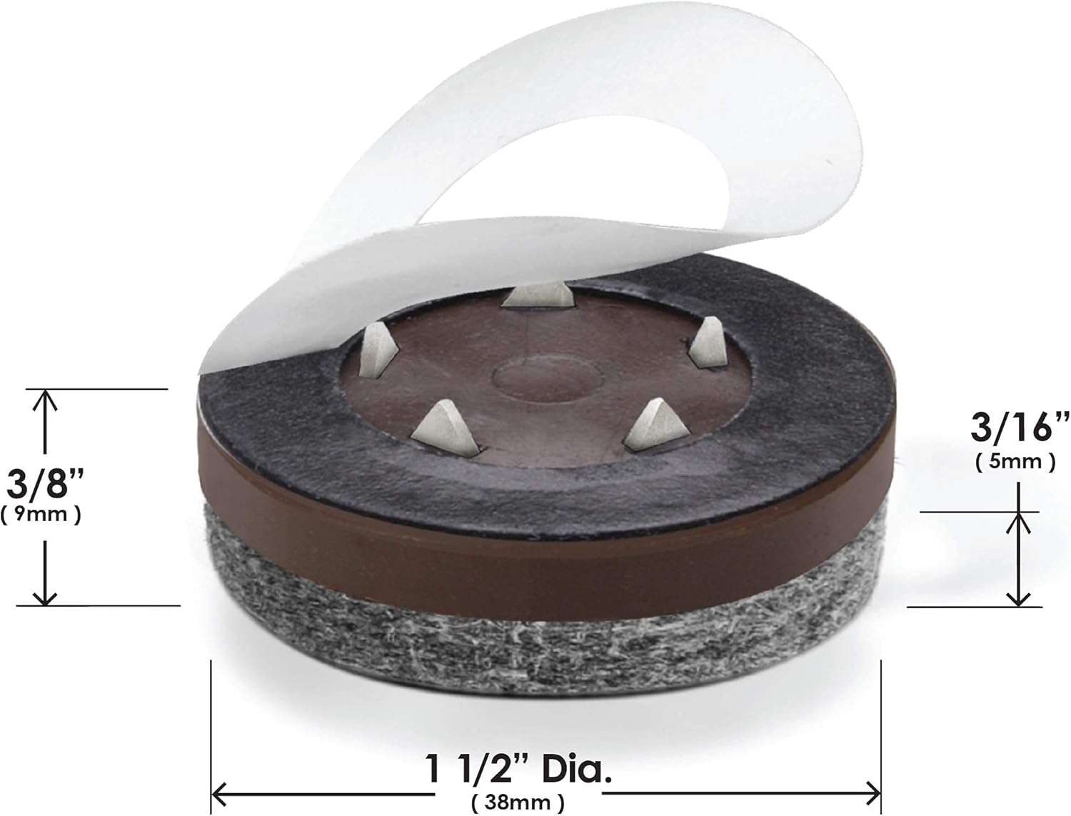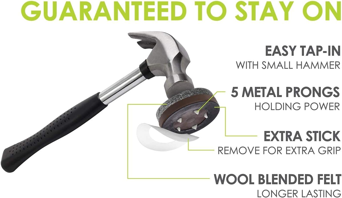 • Felt furniture pads guaranteed to stay on – Each tap in felt furniture glide features 5 steel prongs paired with a strong self-stick adhesive backing that hangs on and will not come off chair legs or furniture feet (not for use on metal furniture or furniture that can't be hammered into). Premium furniture pads designed to stay on furniture legs and last longer.