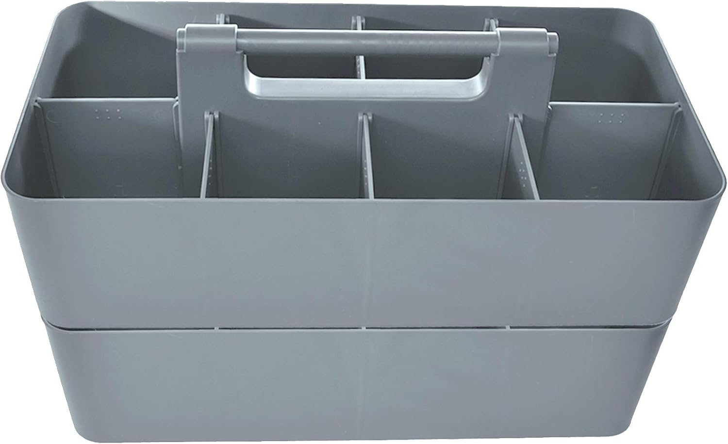 2 PACK - Portable DIY 8 Dividers Durable Plastic Tote Tool & Supply Cleaning Caddy with Handle Made In USA (Orion Gray)