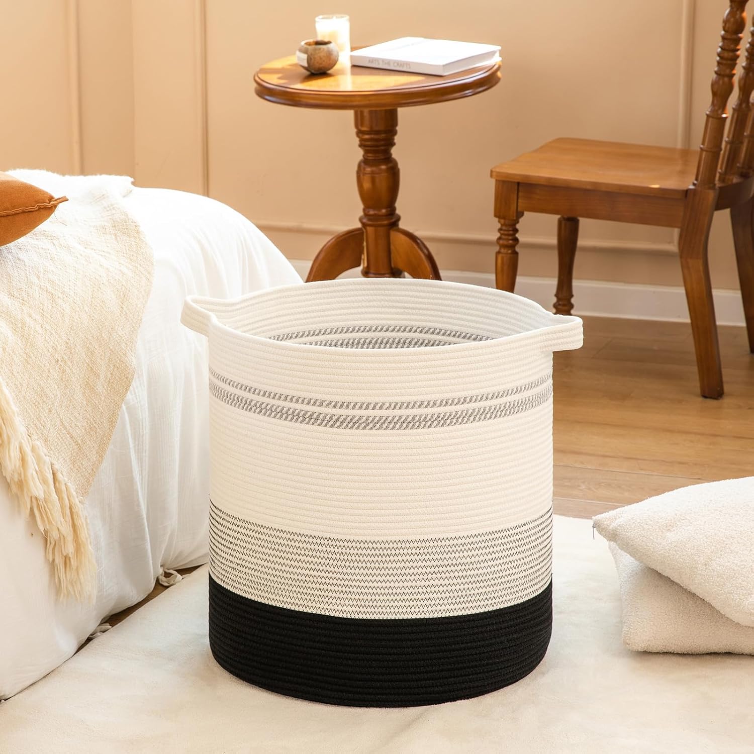 • Oversized Size Decorative Laundry Baskets: The overall size of the laundry Hamper is 20 x 18 inches(all dimensions are measured manually with deviation)This large basket can easily accommodate the family's one-week change of clothes and keep room clean&tidy.This elegant storage basket bring great convenience in life to store bulky items like blankets,comforters,duvets,throw pillows,cushions,stuffed animals,winter clothing etc