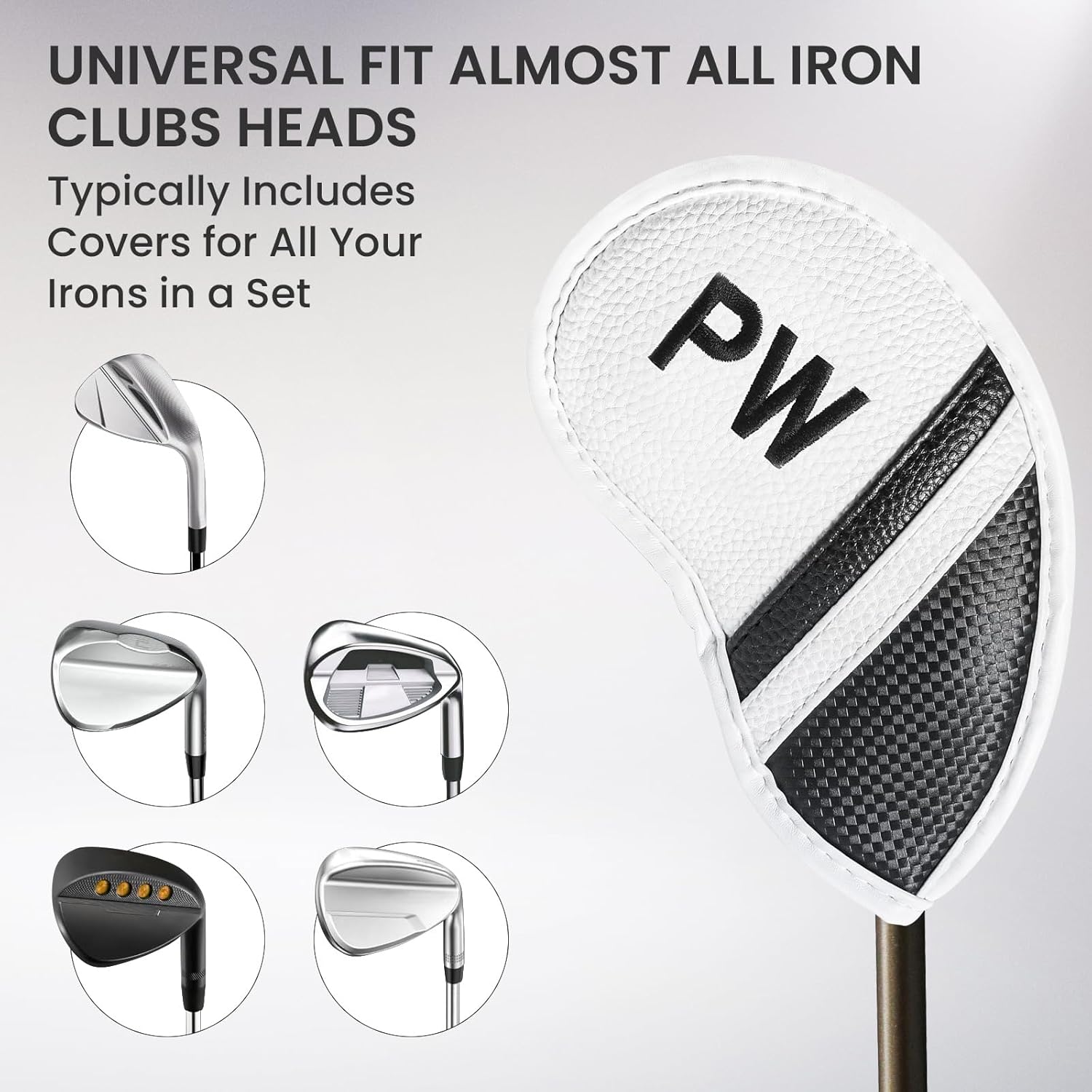 • Universal Fit and Easy Access: Universal fit for standard size iron clubs. The velcro closure ensures a snug hold, while the soft interior guards against scratches. Easy acess to the clubhead without abvious wrinkles.