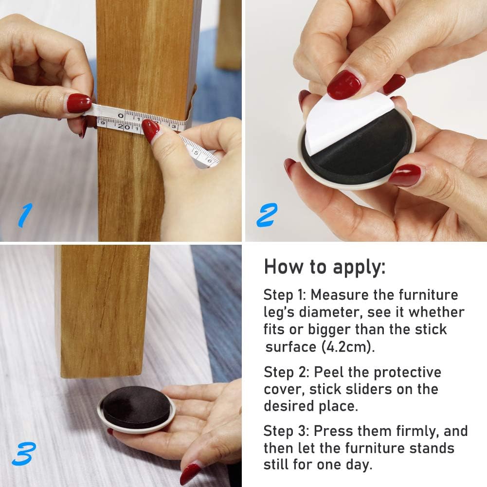 • ★WIDE APPLICATION - With strong adhesion, the furniture glides can be easily stick to wood, glass, metal, plastics, widely used on dining table, desk, chairs and other furniture legs fit the size
