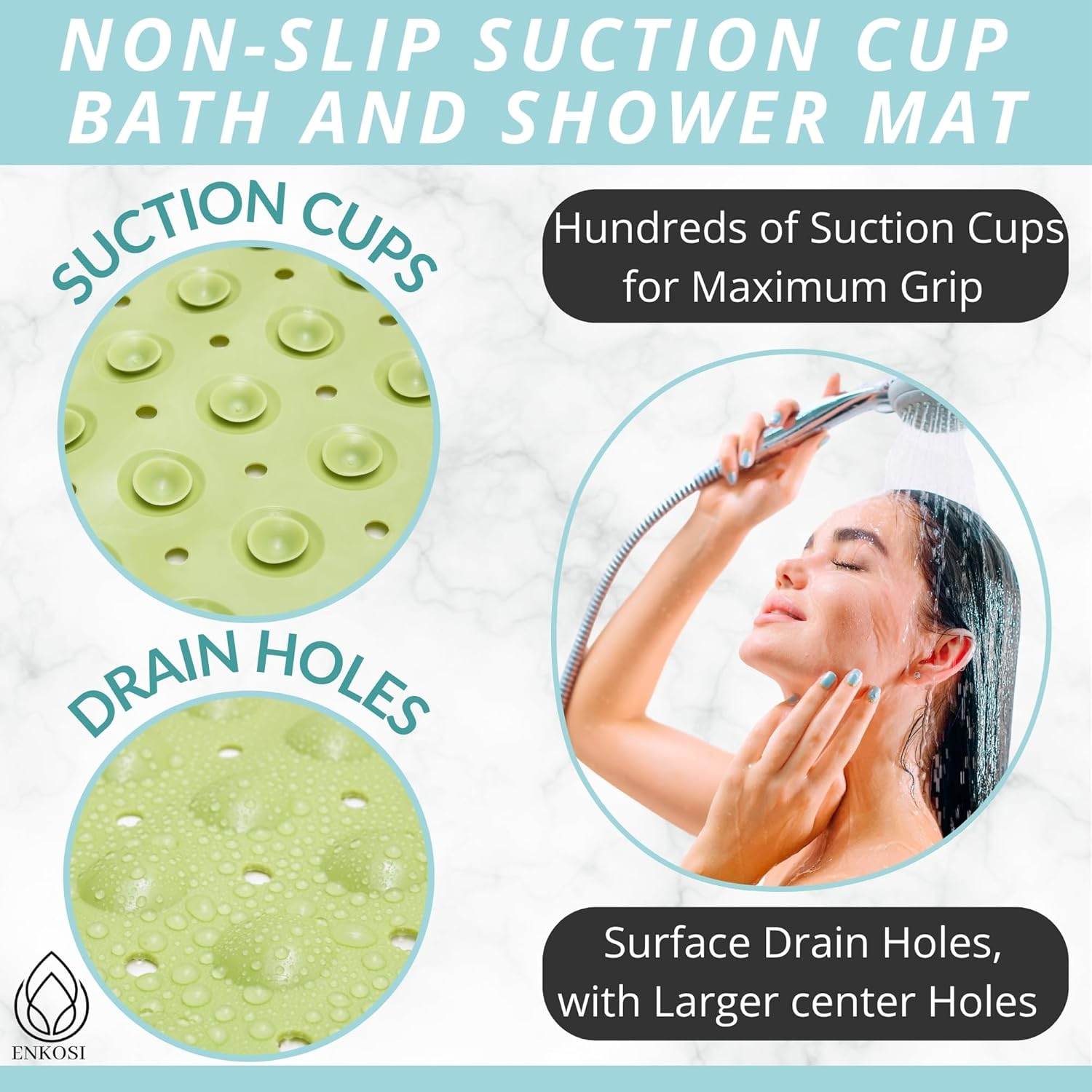 • Great For The Elderly, The Babies & Young Children: Nonslip & generously sized, the Enkosi bath mat ensures the safe bathing & showering of your baby, toddler, as well as your elderly parents or grandparents.