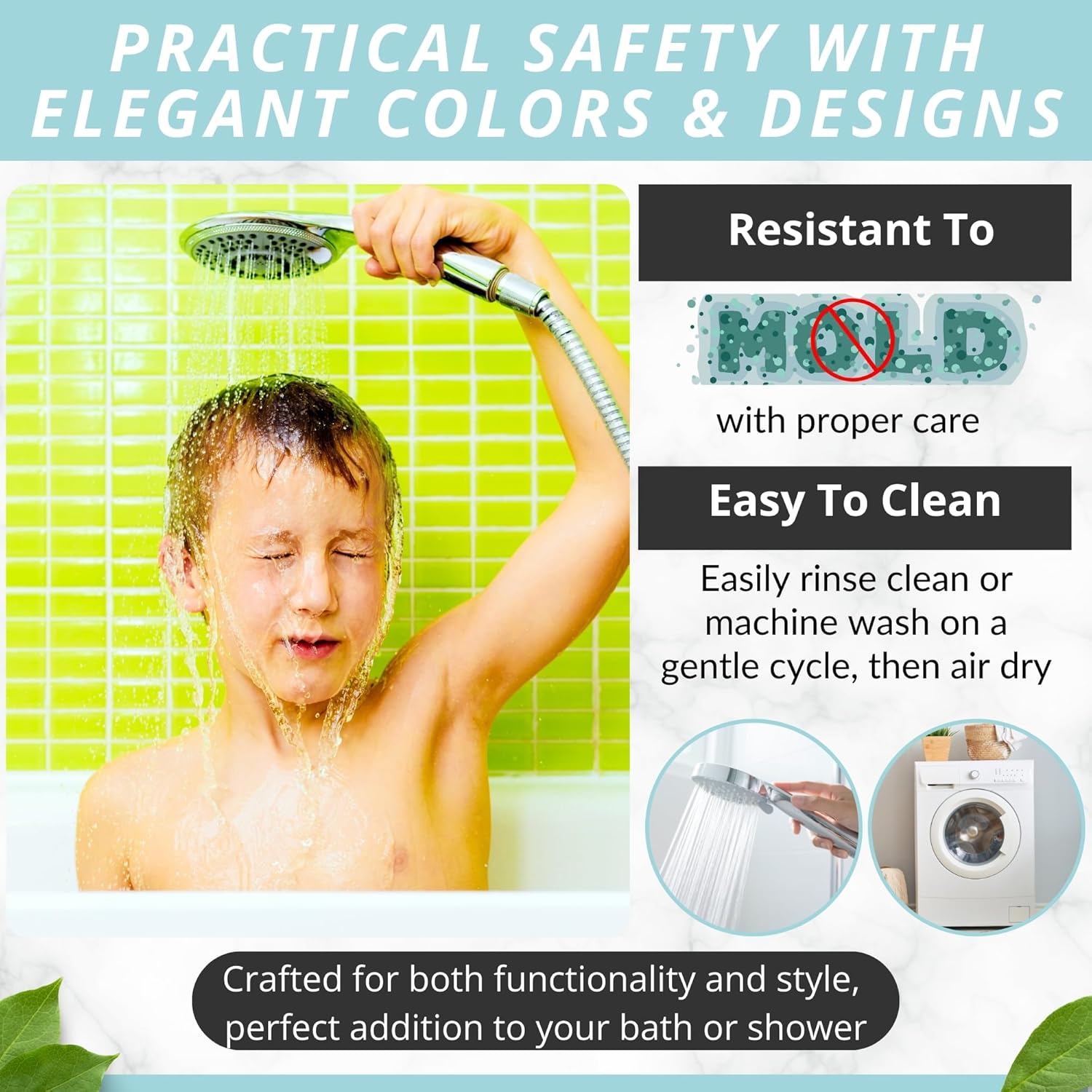 • Modern, Sturdy & Made To Last: Complement your stylish bath rugs décor with an eye-catching bath mat in many color variations. Place it in the washing machine, to keep it fresh, clean and hygienic for a long time!