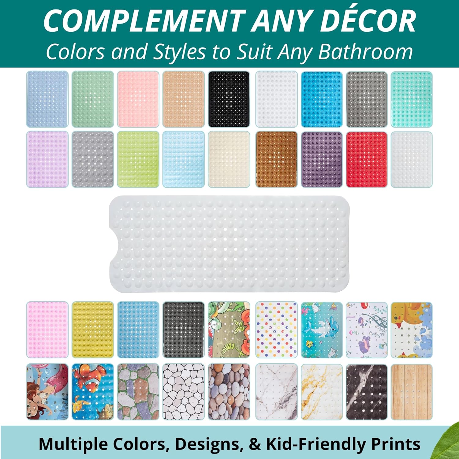 • 360 Protection – For Smooth Surfaces Only: Made with high-quality anti-slip PVC material and 200 suction cups for maximum grip—only on smooth, flat tubs or shower floors. Not suitable for textured surfaces or tile with heavy grout lines