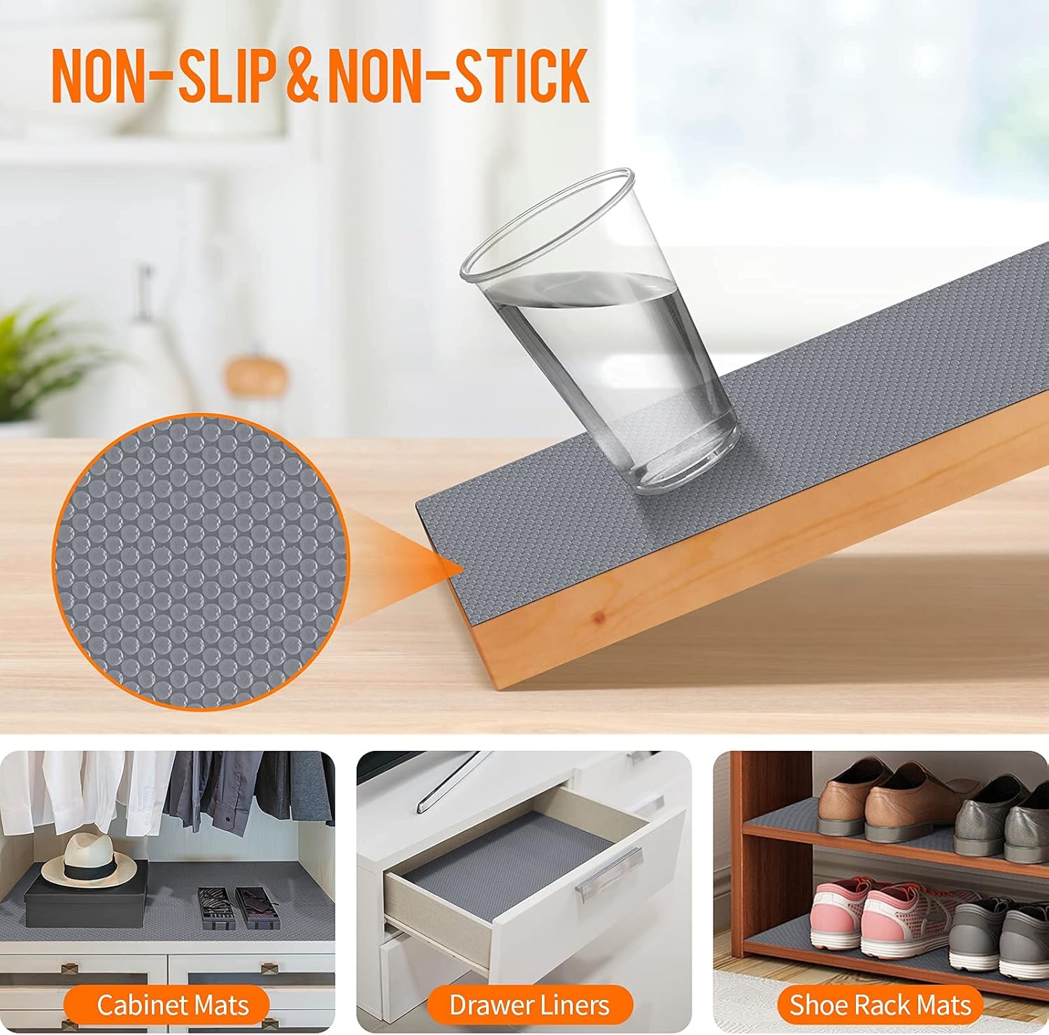 • 🎁 MULTIFUNCTIONAL LINER: Shelves, drawers and cabinet liners are suitable for your home and kitchen. You can put it in your refrigerator as mats to keep fruits and vegetables fresh. It can also be used for your cabinets, drawers, tables, shelves, countertops, shoe racks.
