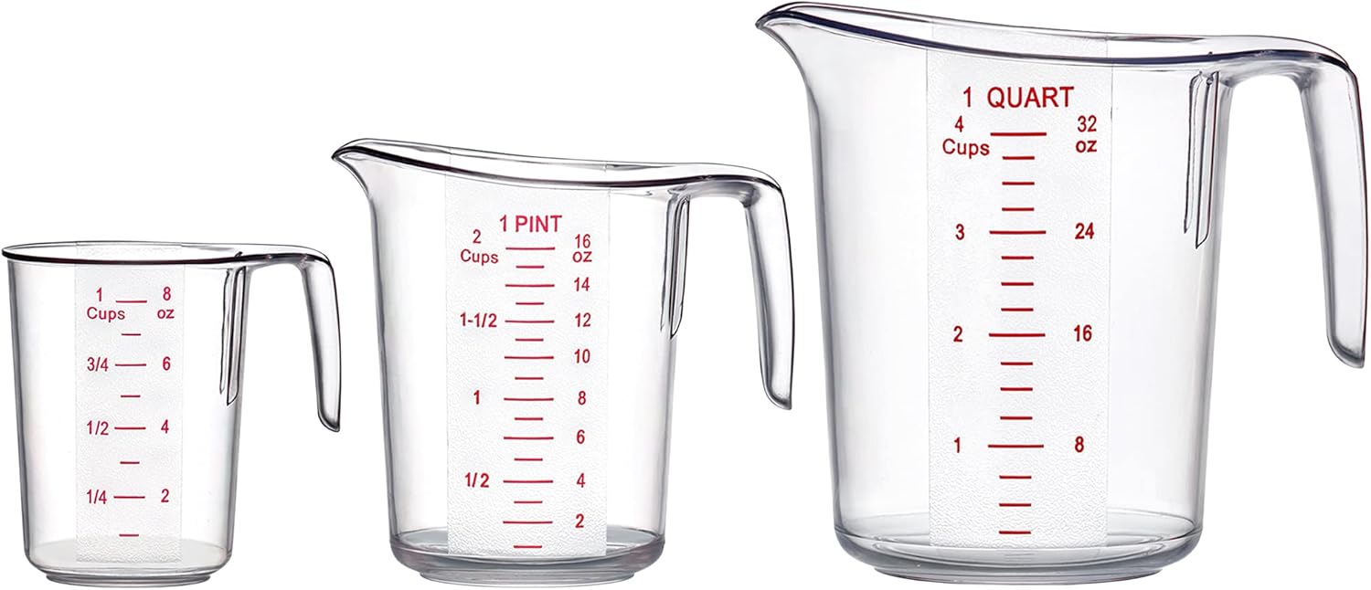 • [MULTIPLE SIZES] The set includes 3 measuring cups of various capacities: 1 cup (8 oz, 250 ml), 2 cups (16 oz, 500 ml), 4 cups (32 oz, 1000 ml).