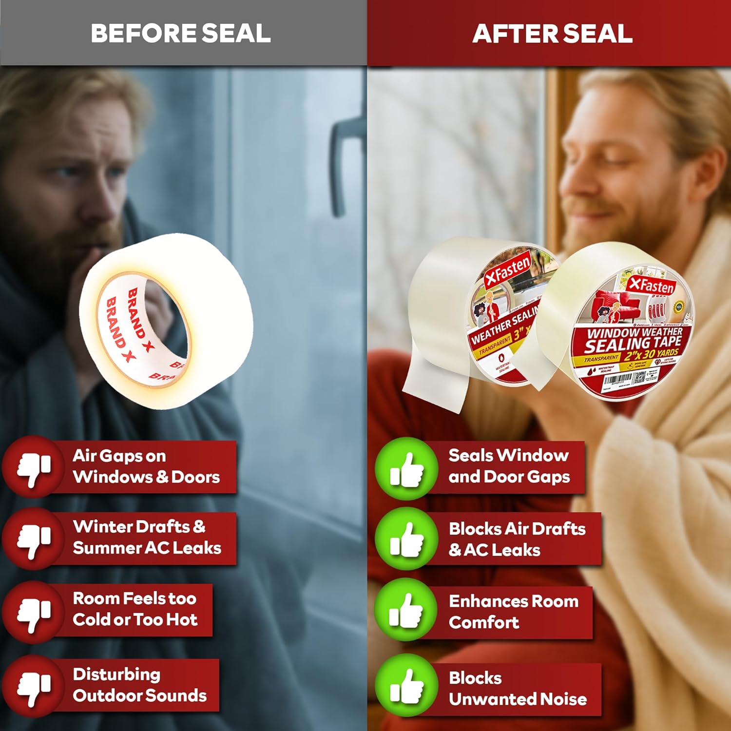 • WOOD-SAFE AND RESIDUE-FREE. This insulation tape for windows and doors removes cleanly and leaves your windows or any material free from residue. Enjoy a draft-free environment with the convenience and ease of use of the XFasten Window Weather Seal Tape.