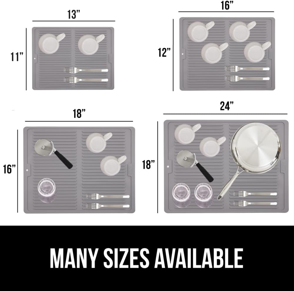 GORILLA GRIP 100% BPA-Free Patented Silicone Dish Drying Mat for Kitchen Counter, 18x24 Inch, Water Catching Ribbed Design, Easy Clean Waterproof Sink Liner, Heat Resistant, Fits Under Rack, Gray