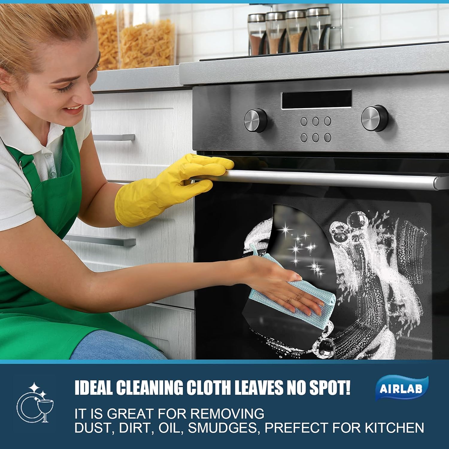 • ALL-PURPOSE RAG: This cleaning rag is great for removing dust, dirt, oil, and smudges, making it ideal for kitchen cleaning, dusting, glass, and more. It's perfect for use on pots and pans, plates, kitchen utensils, counters, mirrors, glasses, furniture, bathroom sinks, and beyond - truly an essential nanoscale cleaning cloth for every household!