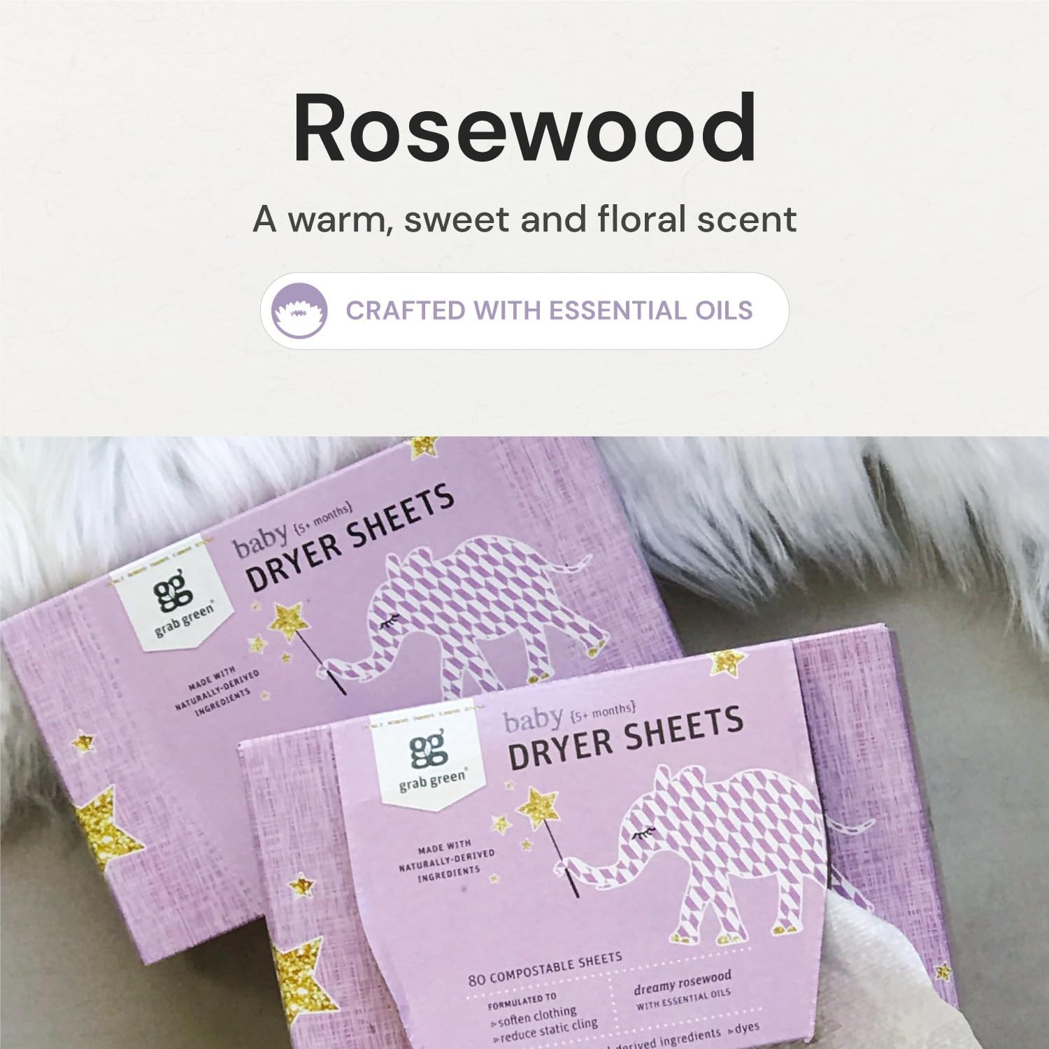 • Contains: 2- 80 Sheet Boxes of Grab Green Natural Baby Dreamy Rosewood Dryer Sheets (160 Sheets Total)