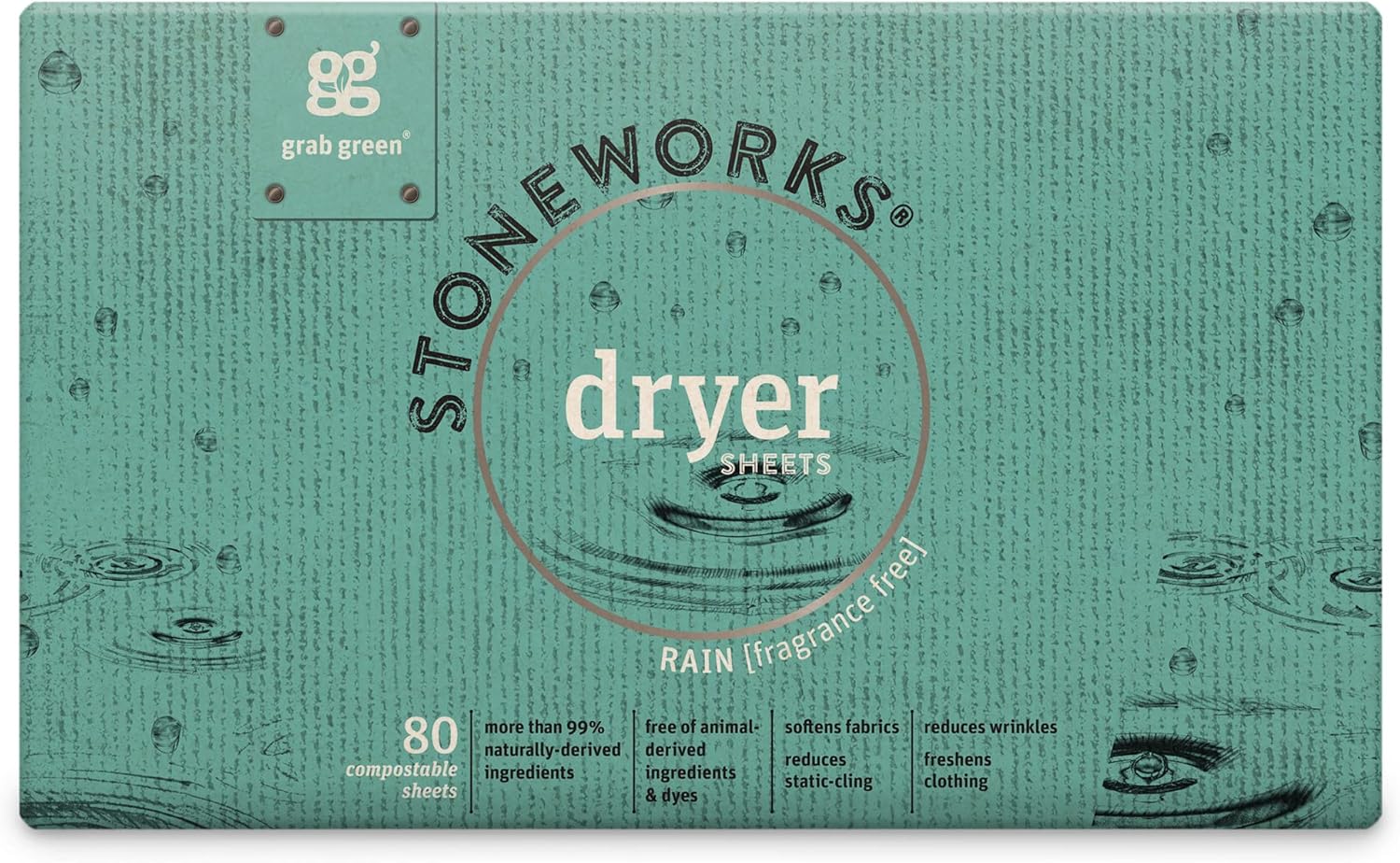 • Contains: 1- 50 Pod Bag of Grab Green Stoneworks Fragrance Free Rain Laundry Detergent Pods and 1- 80 Sheet Box of Grab Green Stoneworks Natural, Compostable Fragrance Free Rain Dryer Sheets