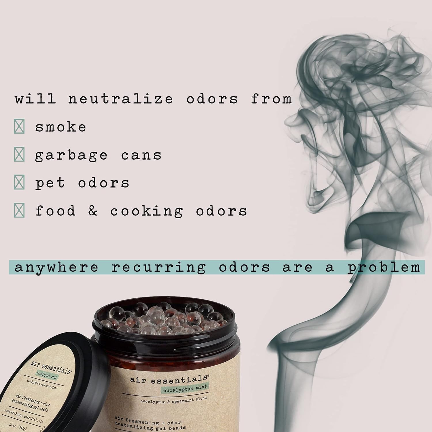 Air Essentials Air Freshener & Odor Neutralizer Gel Beads - 12 oz, Pack of 2 - Odor Eliminator - Made with Pure Essential Oils - Eucalyptus Mint Scent