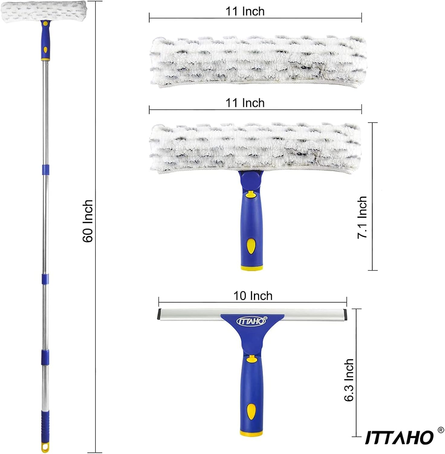 • Window Washing Squeegee Package: 1 x 10 inch squeegee, 2 x 11 inch microfiber scrubber, 3 section of extension pole.ITTAHO color box packaging.The best gift for father,mother,women and men