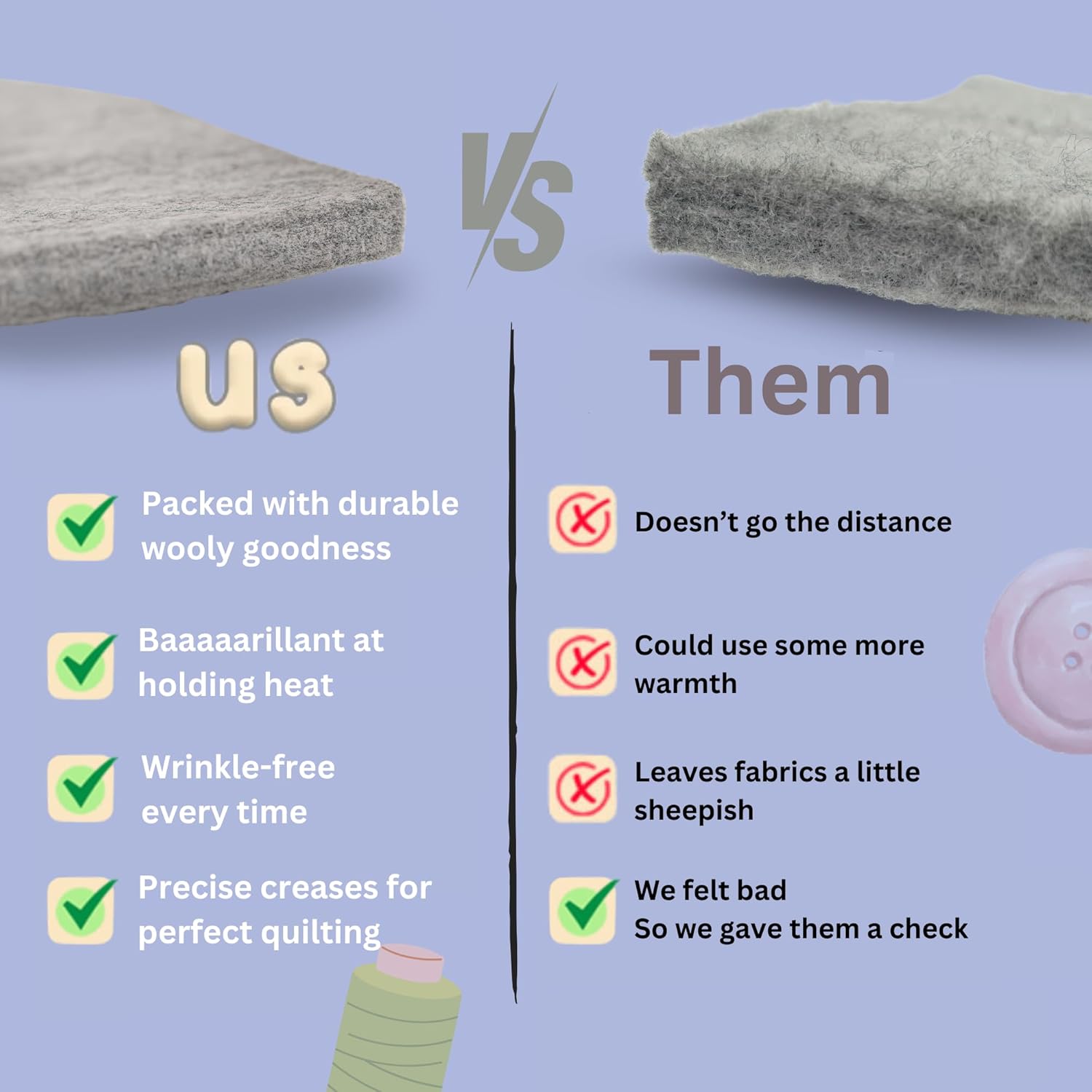• SUPERIOR MERINO WOOL, Crafted for Serious Quilters. Made from 100% Merino wool for superior heat retention and durability. Enjoy a smoother, more efficient pressing experience, ensuring consistent, professional results with every press. Perfect for quilters who demand top performance.