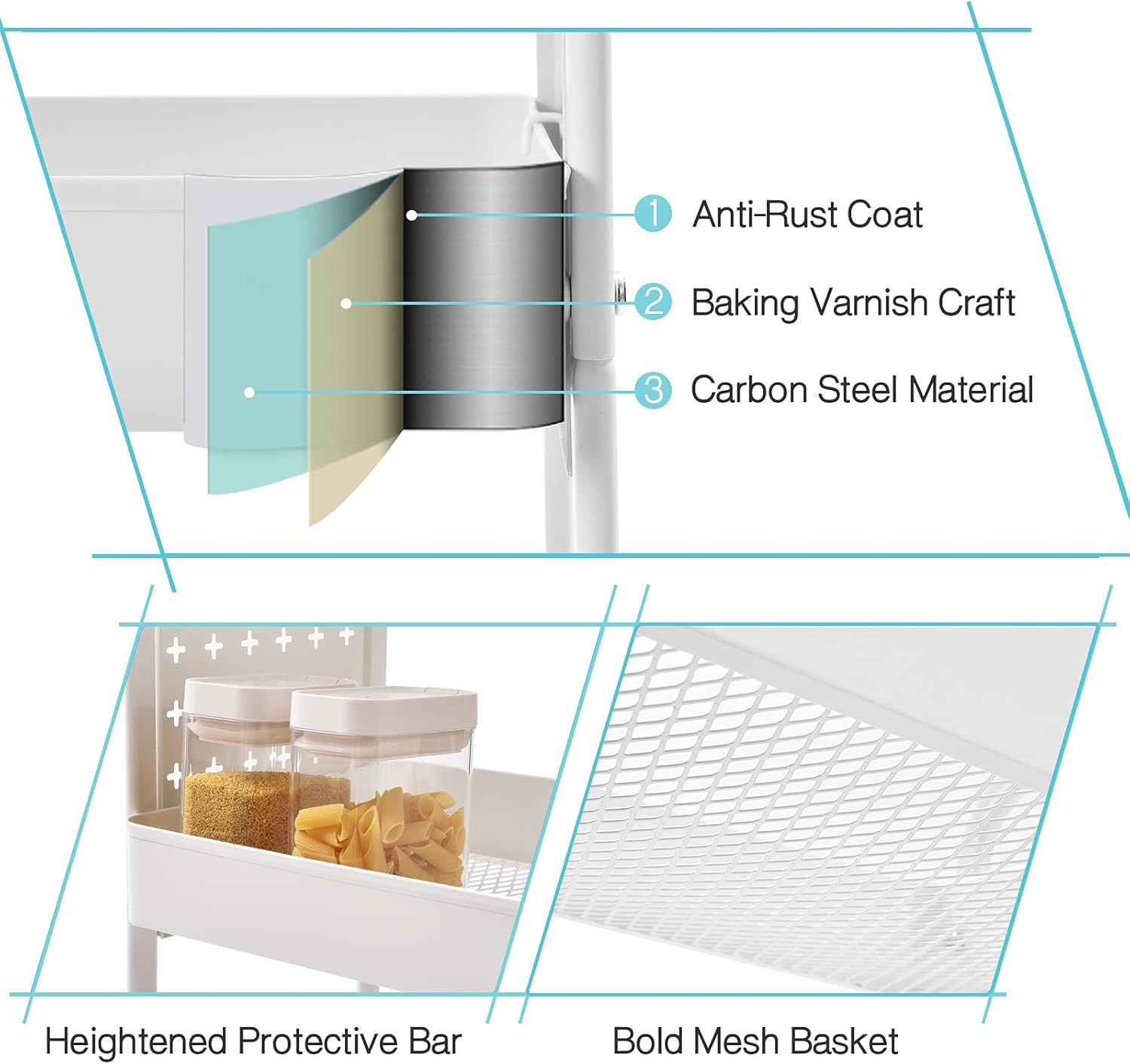• 💦EXPLORE THE UTILITY for APPLICATION | Designed for creating extra storage space, this functional storage cart is friendly for space-saving and easy transport. Not only for pantry, kitchen, livingroom, bedroom, laundry room. But also perfect for office suppliers, classroom appliace, and hosipital suppliers. The side pegboards are effective to hang the things you want to organize.
