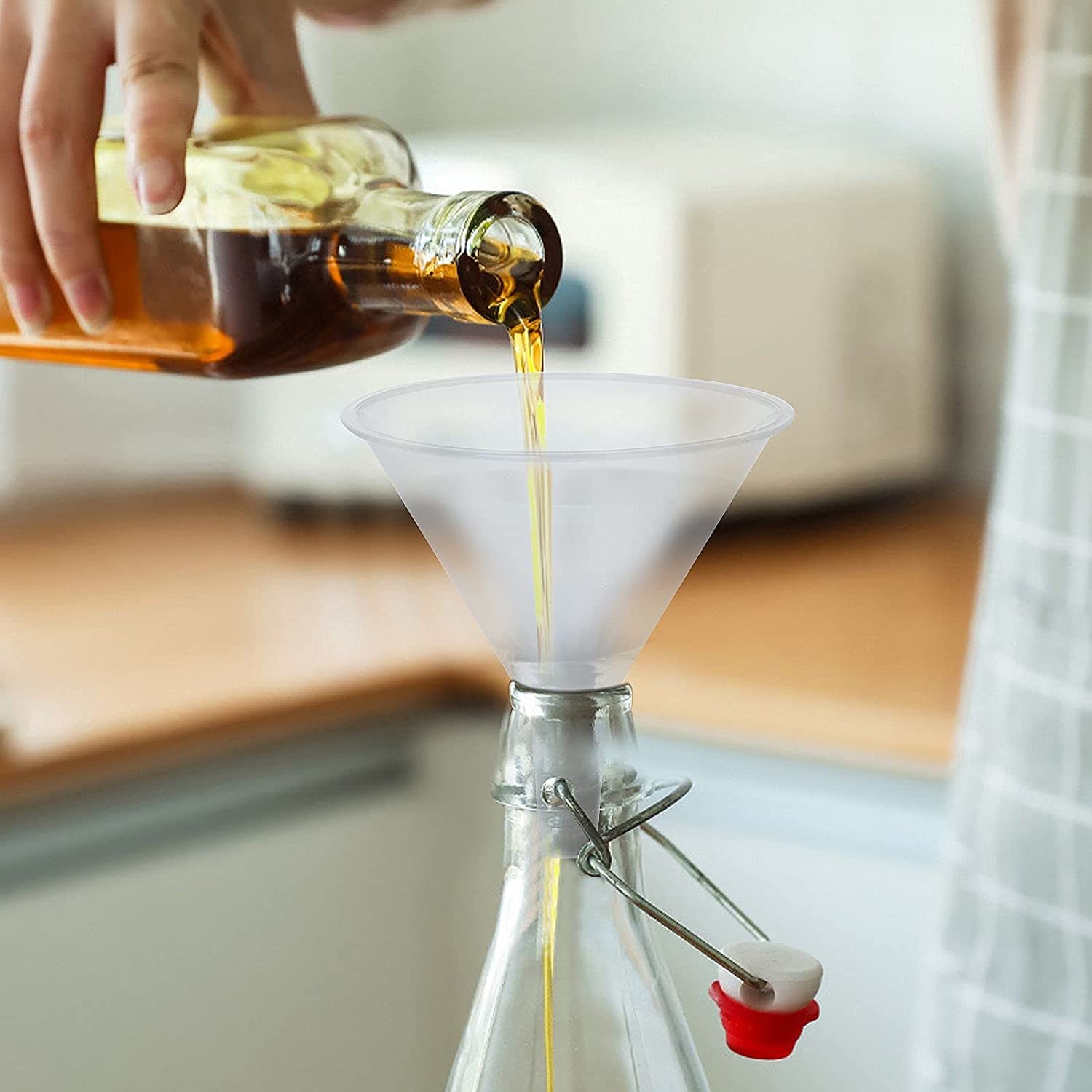 • 【FOOD GRADE KITCHEN ACCESSORIES】Soft and flexible silicone funnel, BPA-Free. Heat resistant -40°C to 250°C, No need to worry that the old plastic funnel may damage the health of your families.