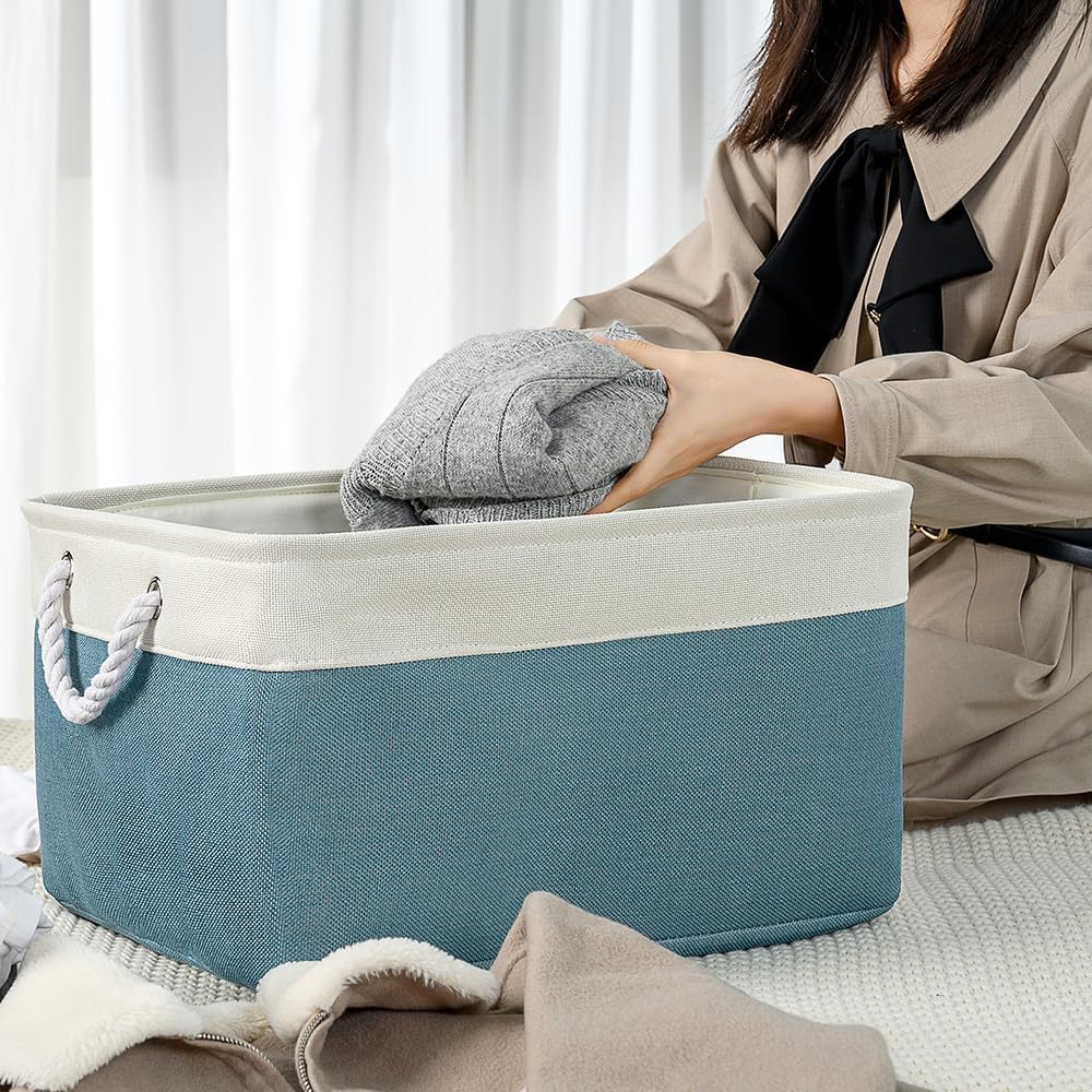 • HANDMADE STICHED & STURDY - TheWarmHome fabric storage bins outside fabric is made of more linen & thicken Environmental EVA, and used a lining material for the inside, Semi handmade stitched. Sturdy metal rod frame around the top keep the basket shape. Strong seams and rope side handles, make this storage baskets are sturdy and easy to grab. Stand up great on their own even unfilled and ensure a greater product lifespan.