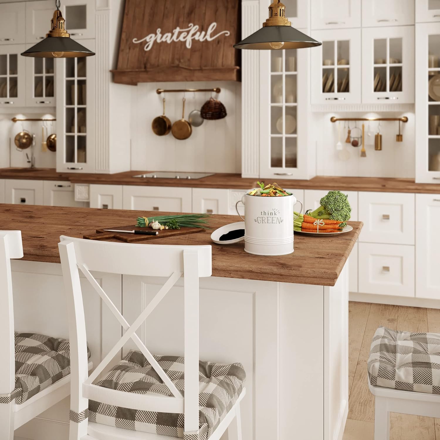Barnyard Designs Compost Bin for Kitchen Counter - 1.2 Gallon Countertop Composter with Extra Smell-Absorbing Filters and Inner Bucket for Easy Cleaning - Food Waste Bin for Kitchen with Lid (White)