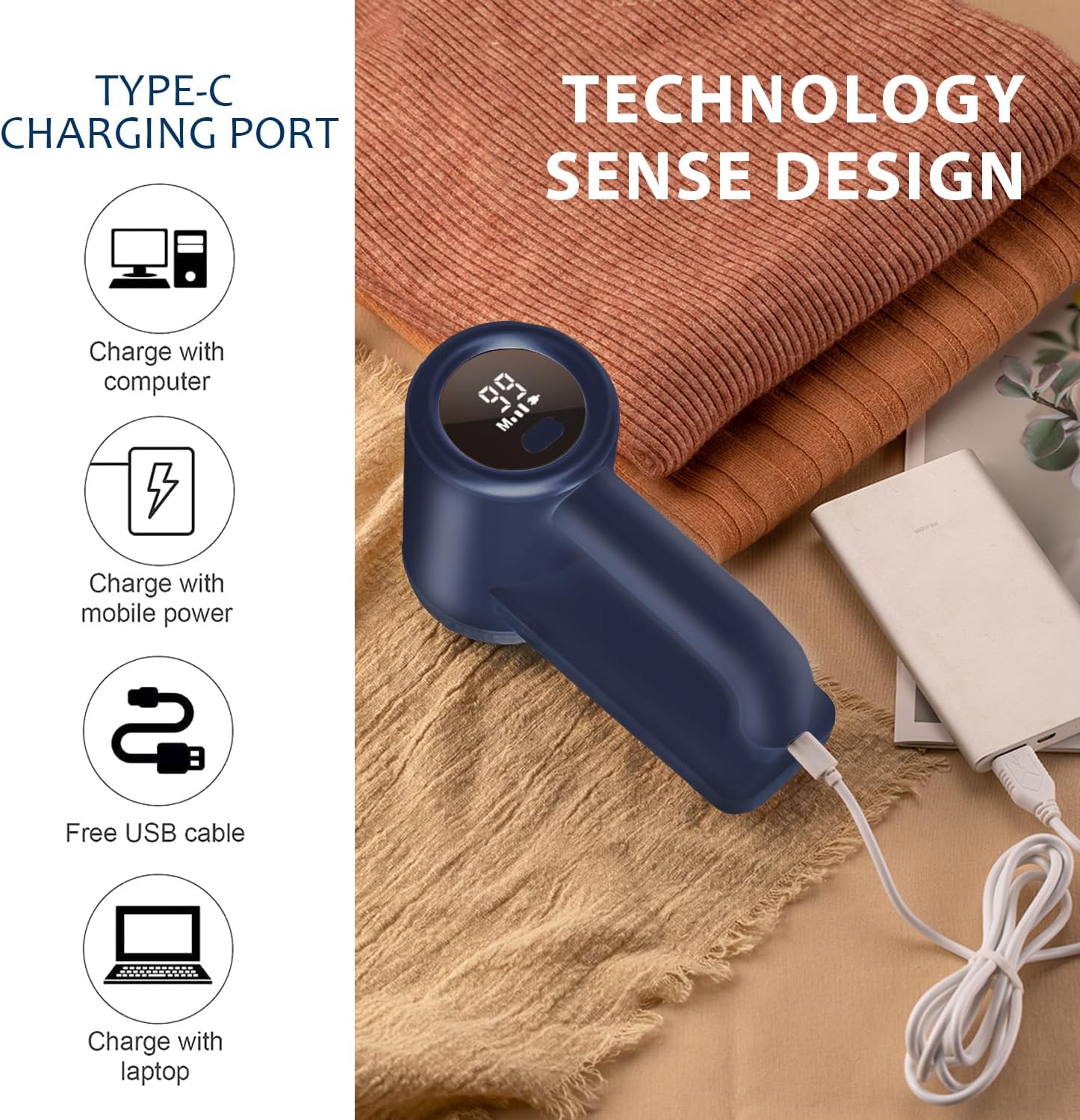 • ✅ Super Battery with Fast Charging: Built-in 2000mAh battery fully charges in 3 hours for 120-180 minutes of use. Fabric shaver for furniture/ clothes shaver pill remover equipped with a Type-C port cable can plug into any USB port - laptop, car, or power bank