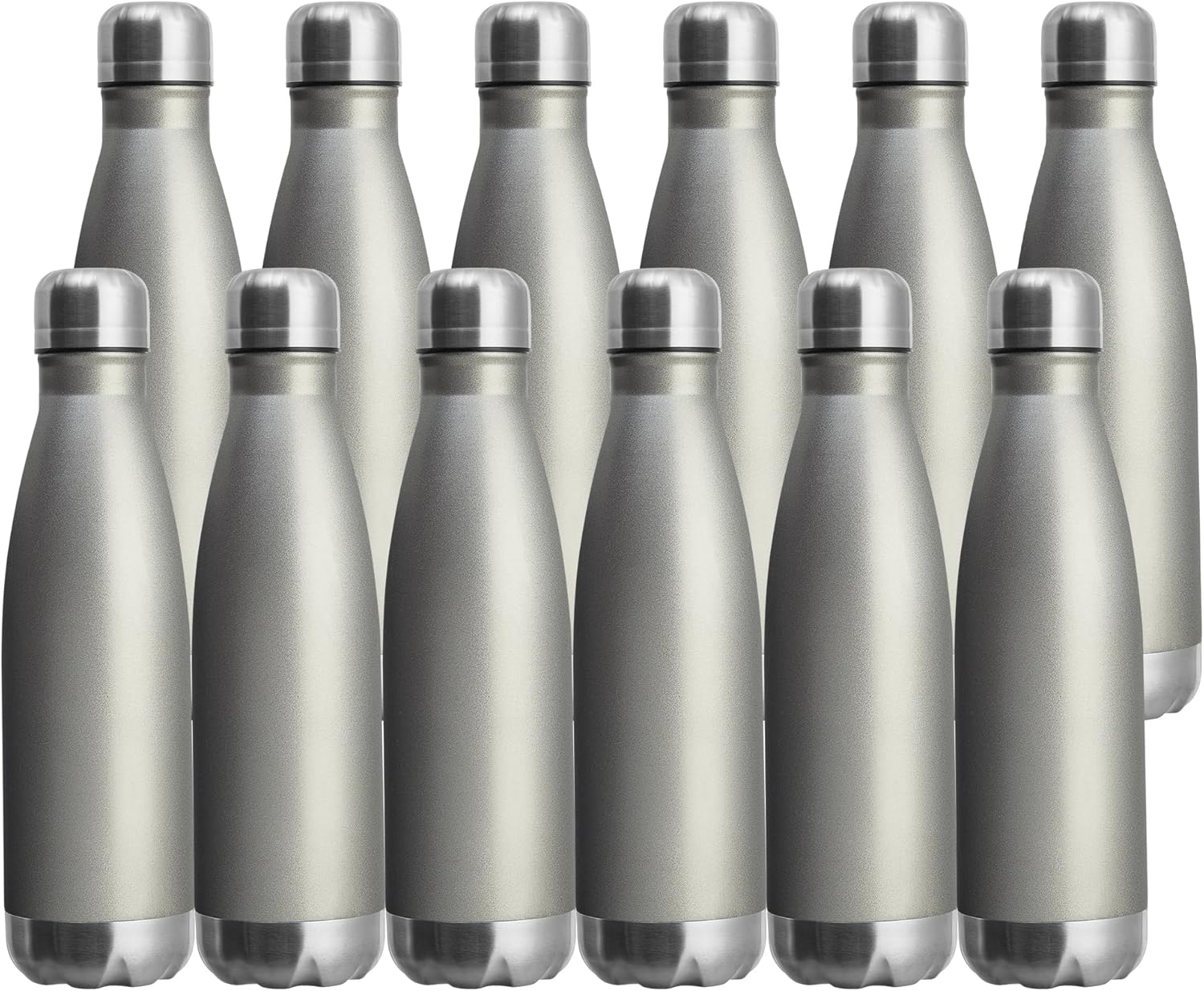 MEWAY 17oz Sport Water Bottle 12 Pack Vacuum Insulated Stainless Steel Leak-Proof Double Wall Cola Shape Water Bottle,Keep Drinks Hot & Cold (Cold Gray,12 Pack)