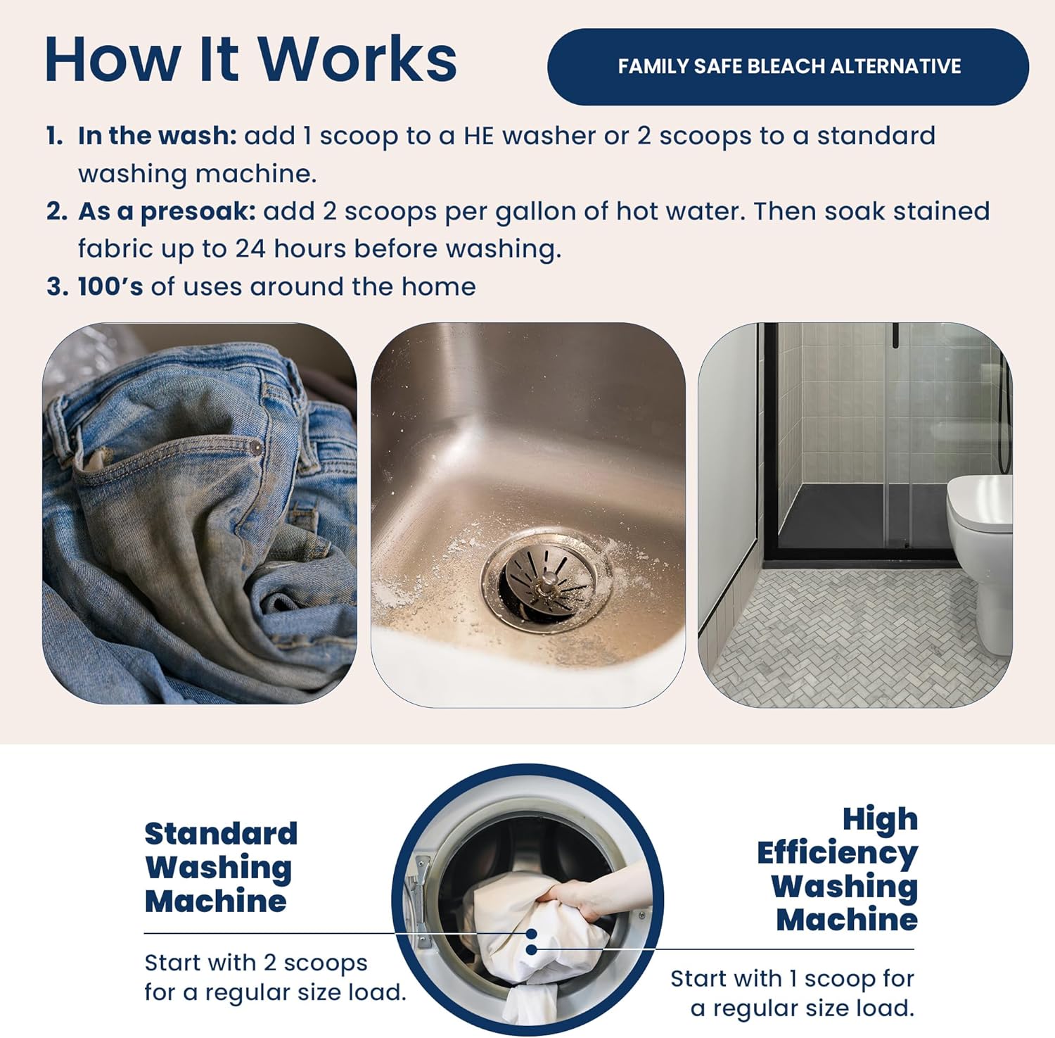 • SODIUM PERCARBONATE FORMULA: Utilizes a safe and effective alternative to chlorine bleach, delivering powerful cleaning results while being gentle on your fabrics.