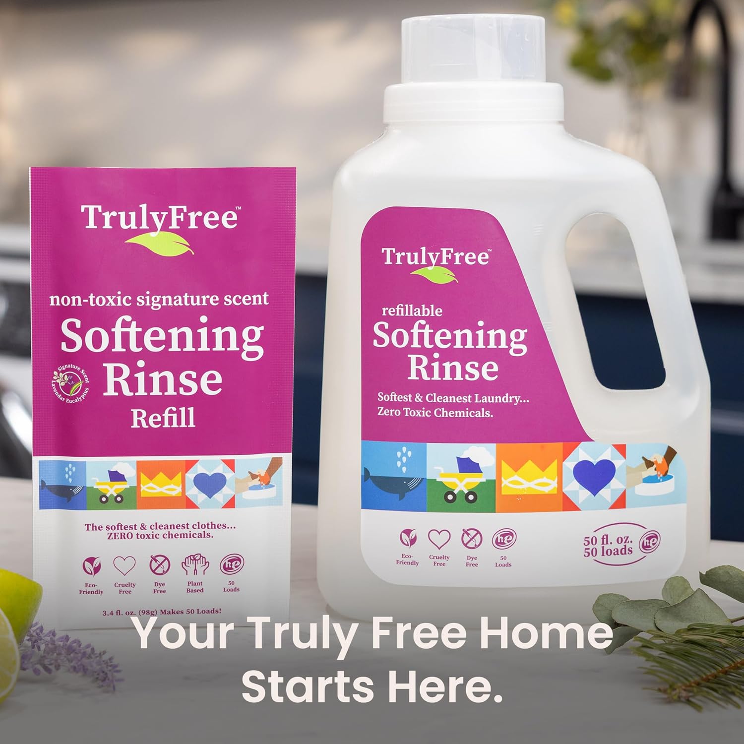 Truly Free Natural Fabric Softener for Sensitive Skin, Baby, Kids | Clean Easy Powder to Liquid Laundry Softener | Lavender Eucalyptus, Septic Safe | 1 Pack Fabric Softner + 1 Refillable Jug, 50 Loads